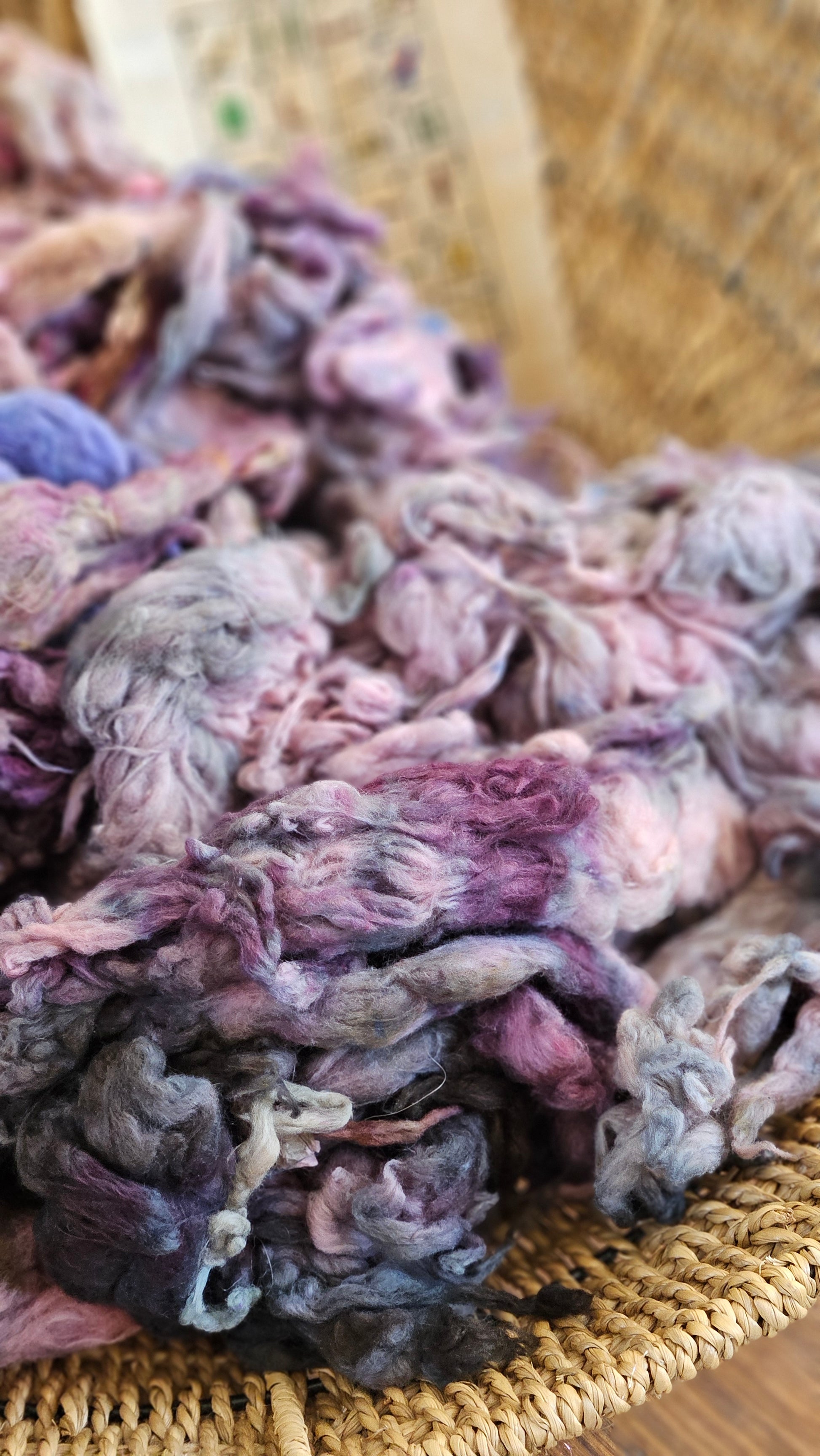 ABYDOS Hand-Dyed Organic Extra Fine Cotton Noil for fiber art, texture blending, and papermaking - 1 ounce | 28 grams