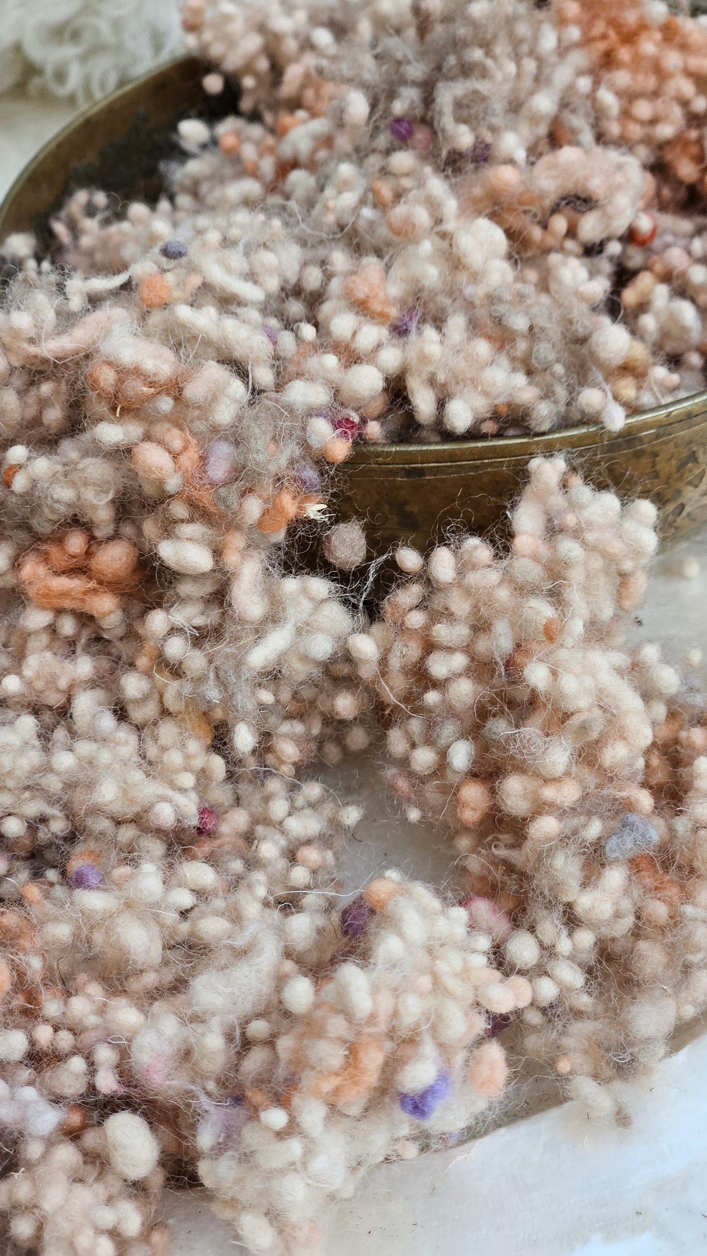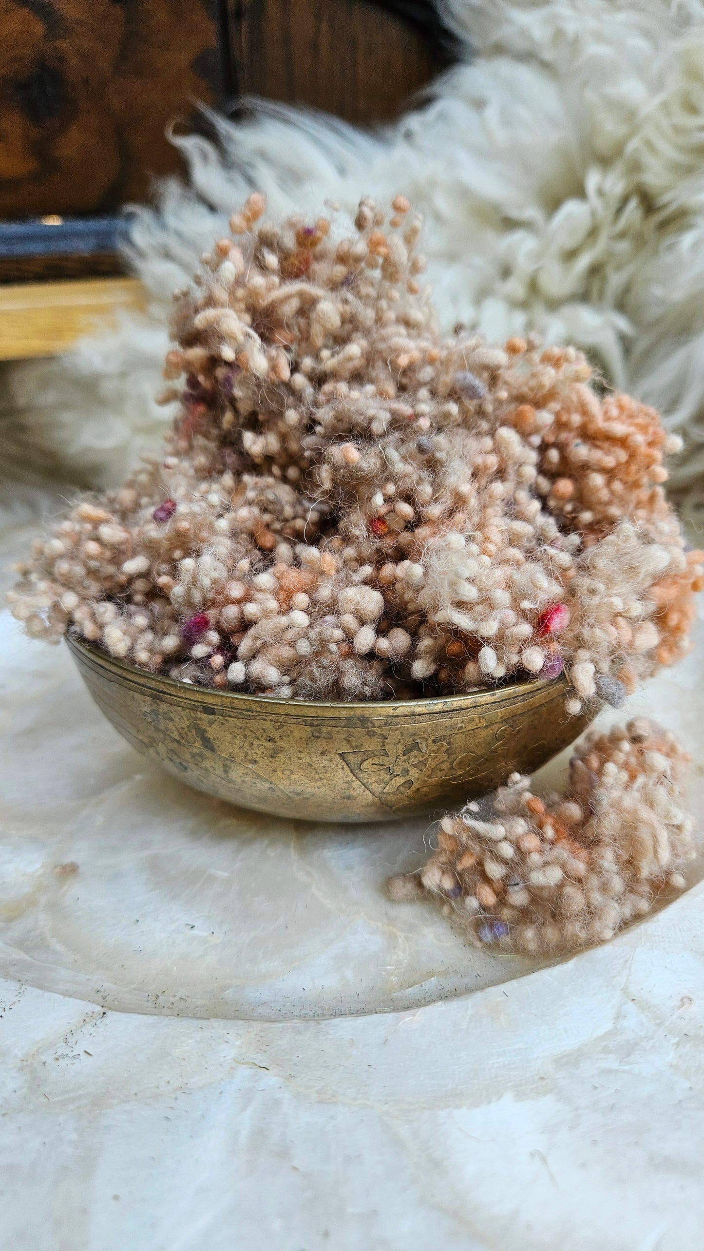 Hand-dyed wool nepps are the confetti of creativity that bring your fiber art to life. Each tiny ball of wool carries color, character, and whimsy - perfect for spinners, felters, weavers, and mixed-media makers. Add pops of texture, speckles of color, and painterly dimension to your spinning, felting, papermaking, and mixed media projects with fine wool nepps.