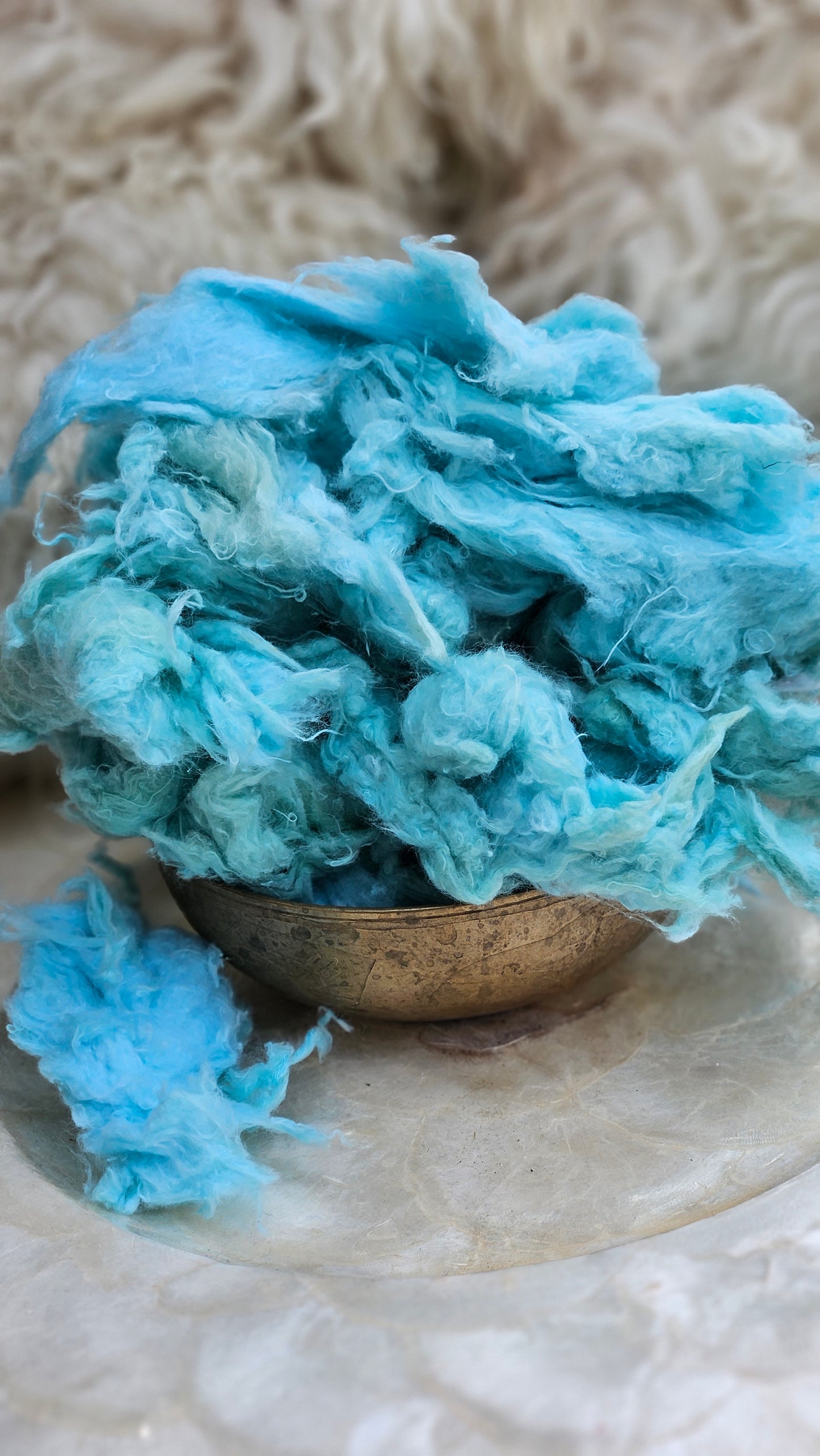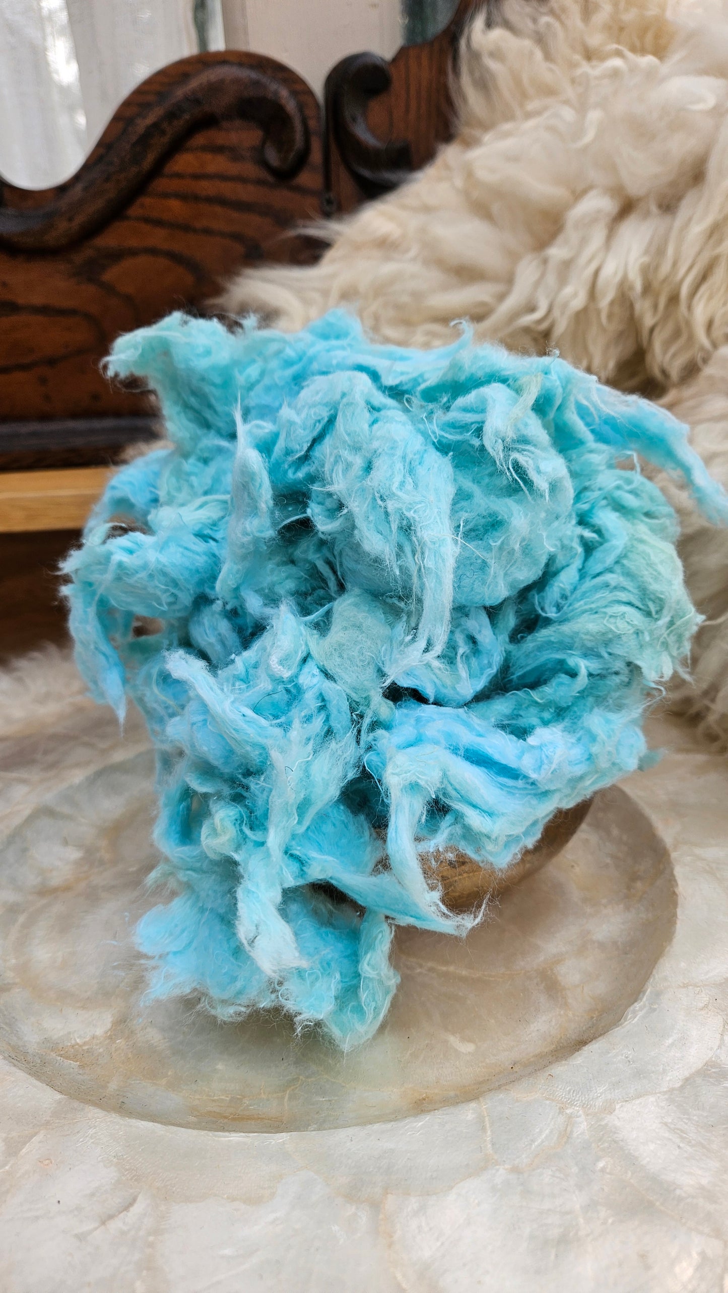 BLUET - hand-dyed recycled cotton noil "feathers" effects texture for blending, felting, and papermaking - 2.5 oz | 71 g