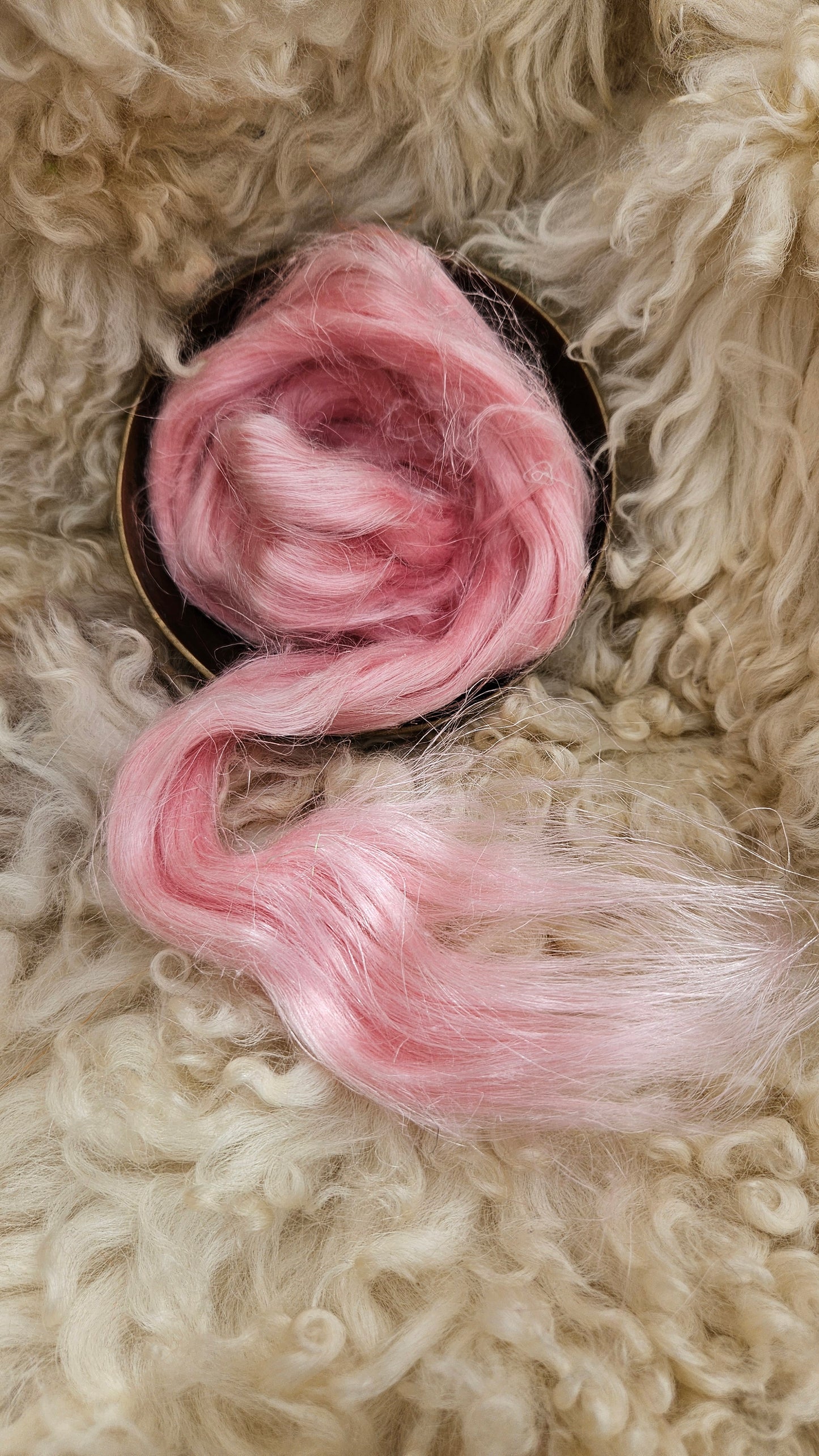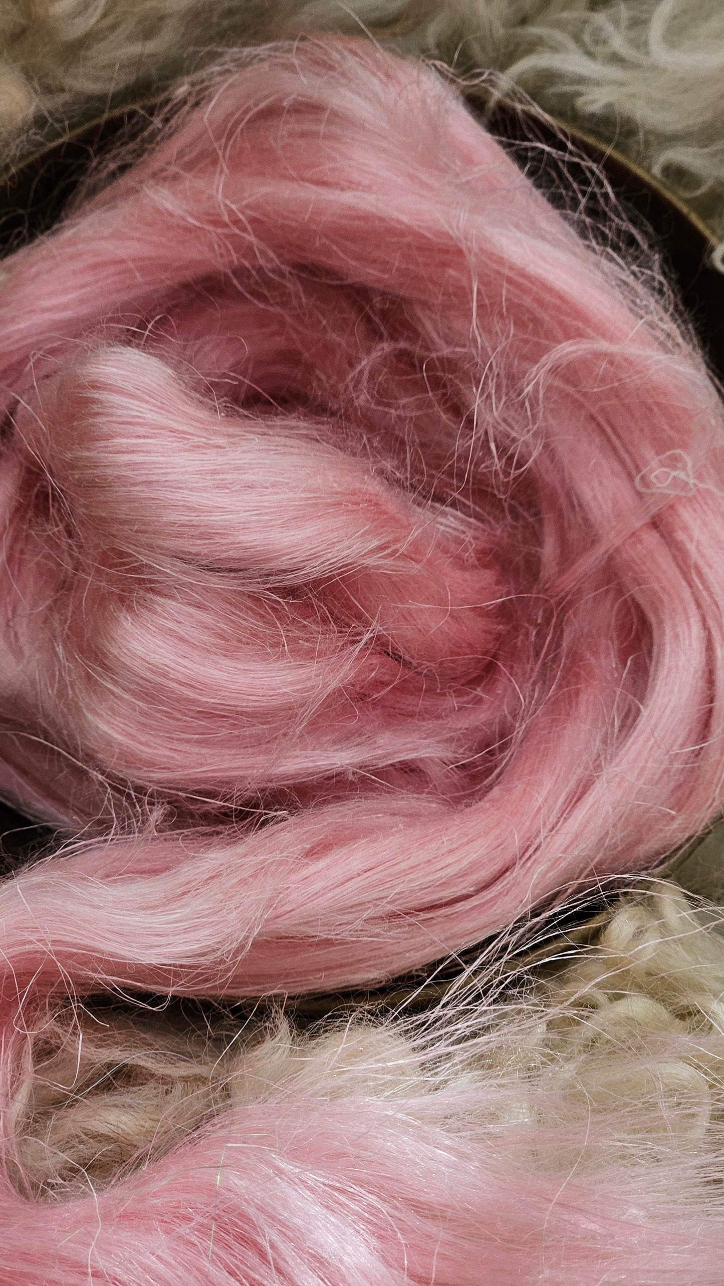PINK PEPPERMINT - dyed flax linen roving for spinning, fiber blending, felting, and papermaking - 1 oz | 28 g