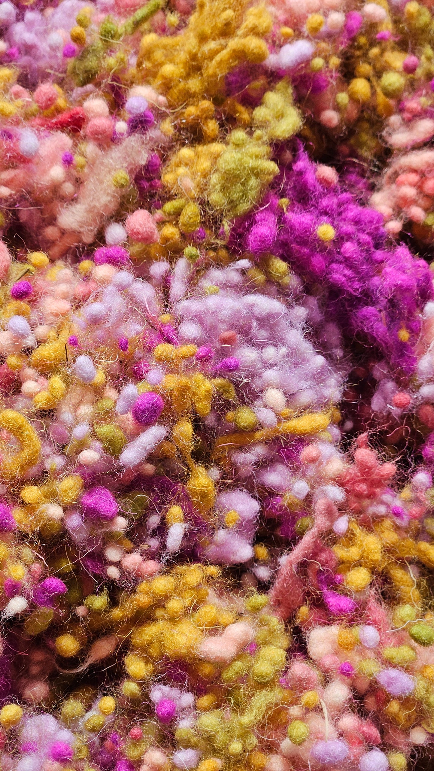 Hand-dyed wool nepps are the confetti of creativity that bring your fiber art to life. Each tiny ball of wool carries color, character, and whimsy - perfect for spinners, felters, weavers, and mixed-media makers. Add pops of texture, speckles of color, and painterly dimension to your spinning, felting, papermaking, and mixed media projects with fine wool nepps.