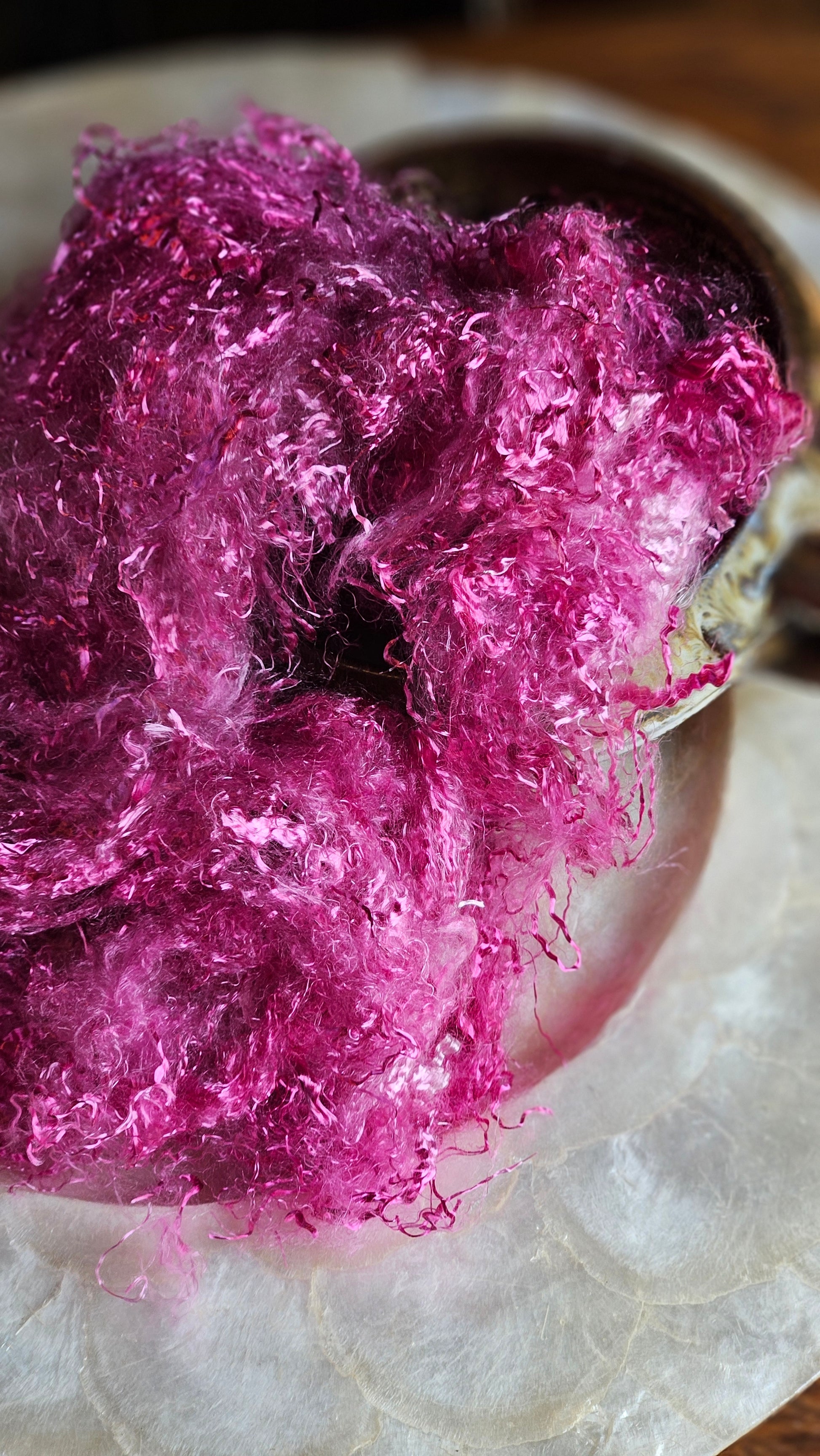 Hand-dyed eucalyptus crimp fiber with silky soft luminescent crimped texture - and perfect for spinning, felting, and papermaking. Sustainably sourced, vegan, plant-based, and artist-dyed in small batches