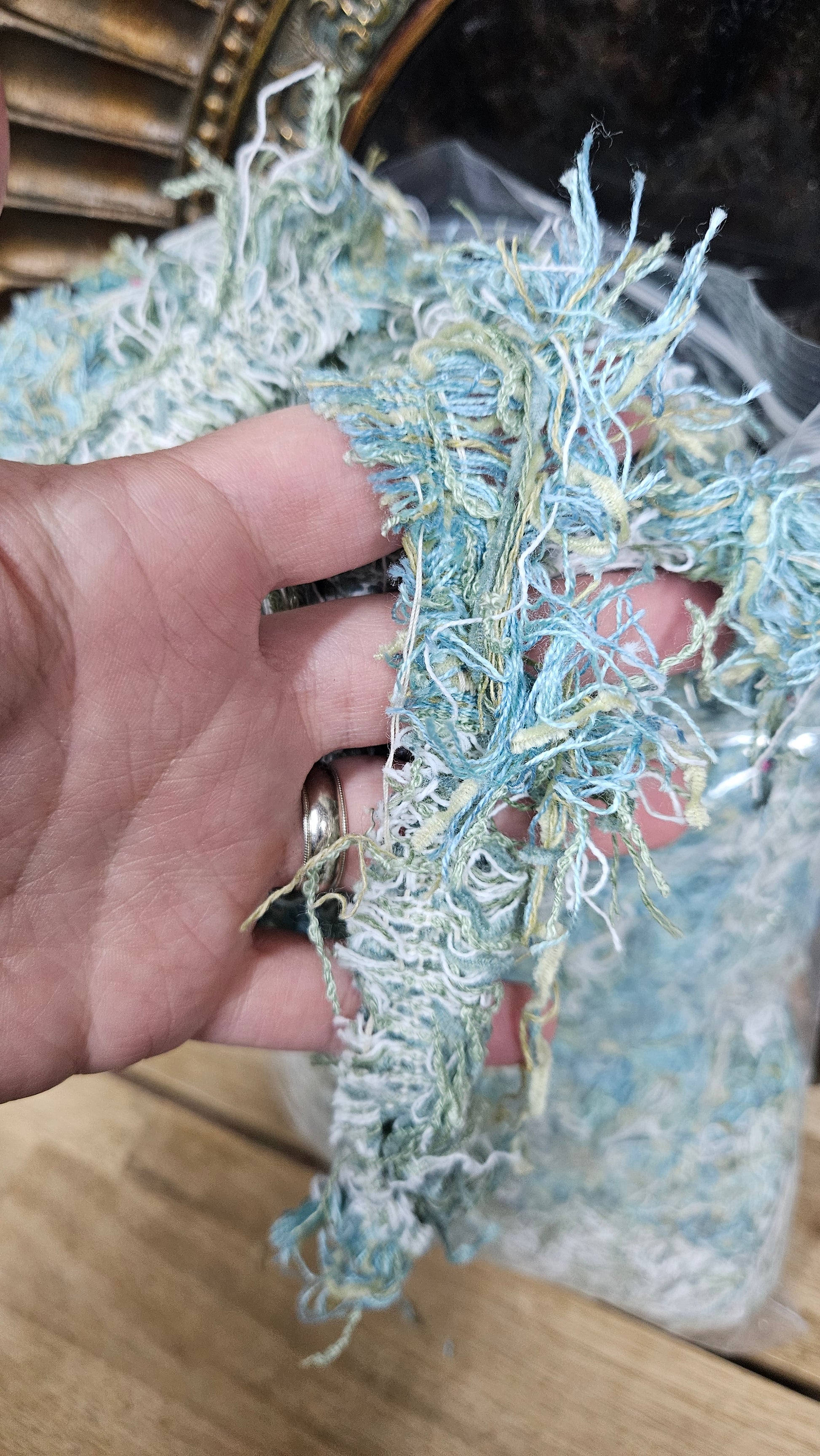 COASTAL SKIES - shaggy fringe ribbon for tapestry weaving and fiber art - MARINE05 (.9 lb)