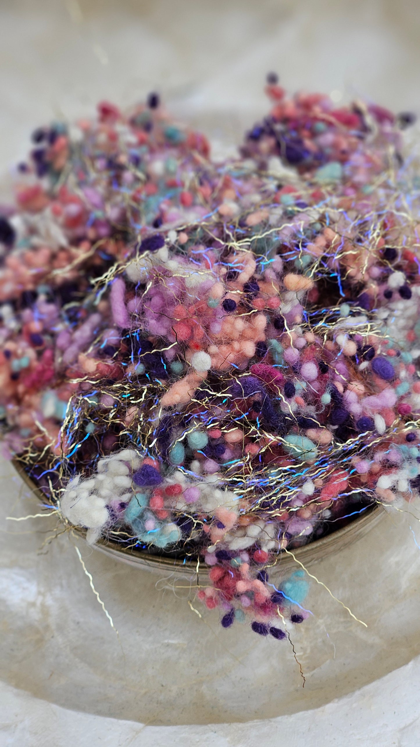 Hand-dyed wool nepps are the confetti of creativity that bring your fiber art to life. Each tiny ball of wool carries color, character, and whimsy - perfect for spinners, felters, weavers, and mixed-media makers. Add pops of texture, speckles of color, and painterly dimension to your spinning, felting, papermaking, and mixed media projects with fine wool nepps.