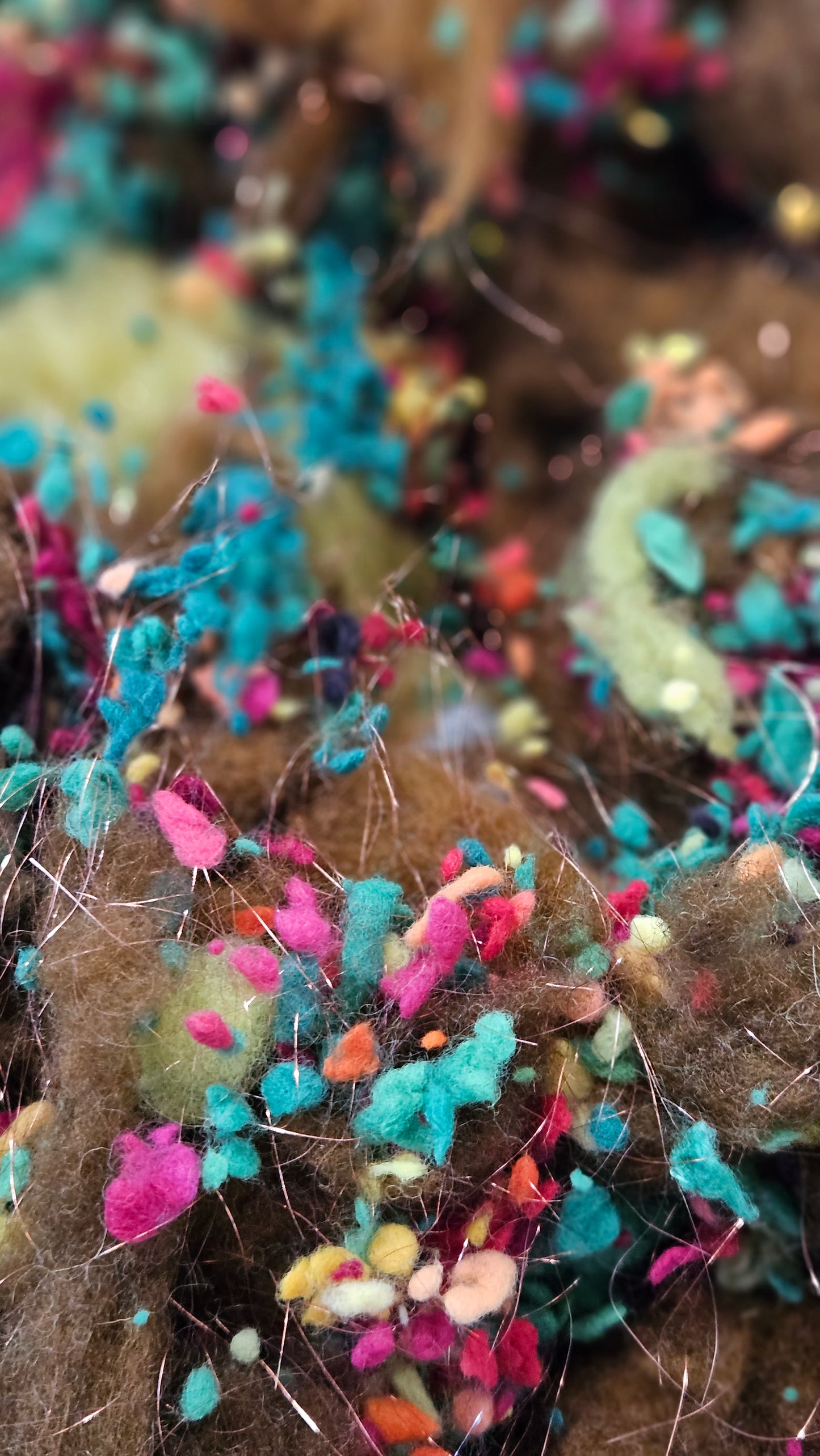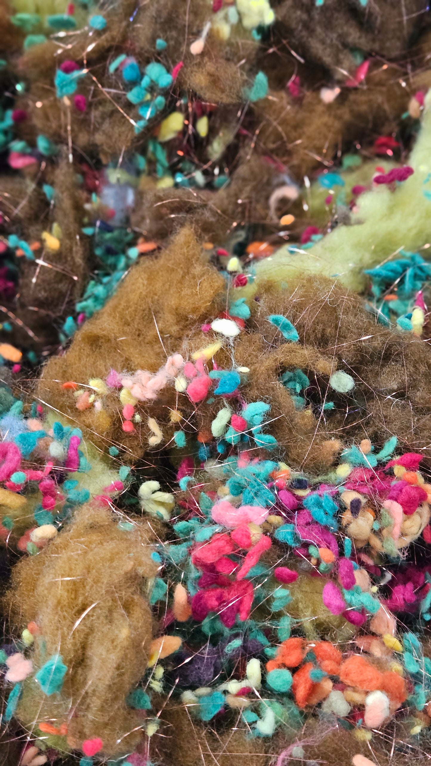 - COTTON NEPPS: Dyed flecks of recycled cotton that are happy to be blended with anything and create a soft polka dot texture like an impressionistic painting.