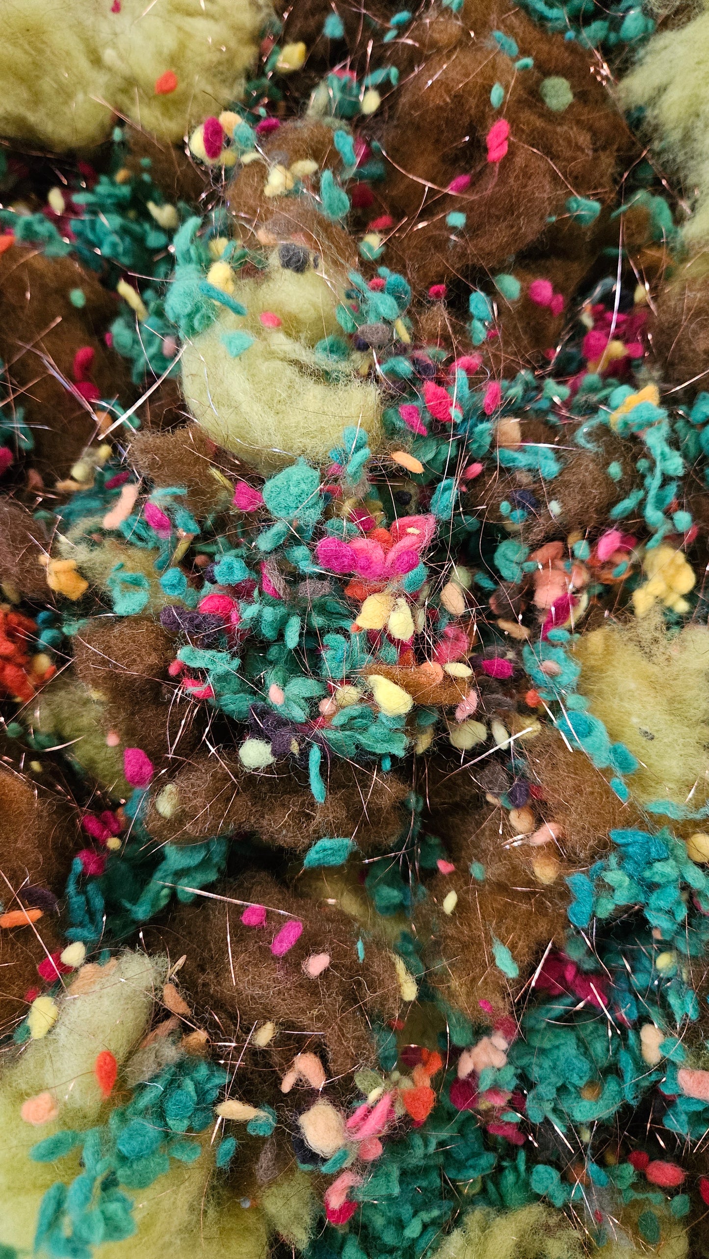 An extra chunky blend of cardable fibers for creating art batts, rolags, or other blends to spin into yarn for knitting, weaving, and crochet. One pinch goes a long way!