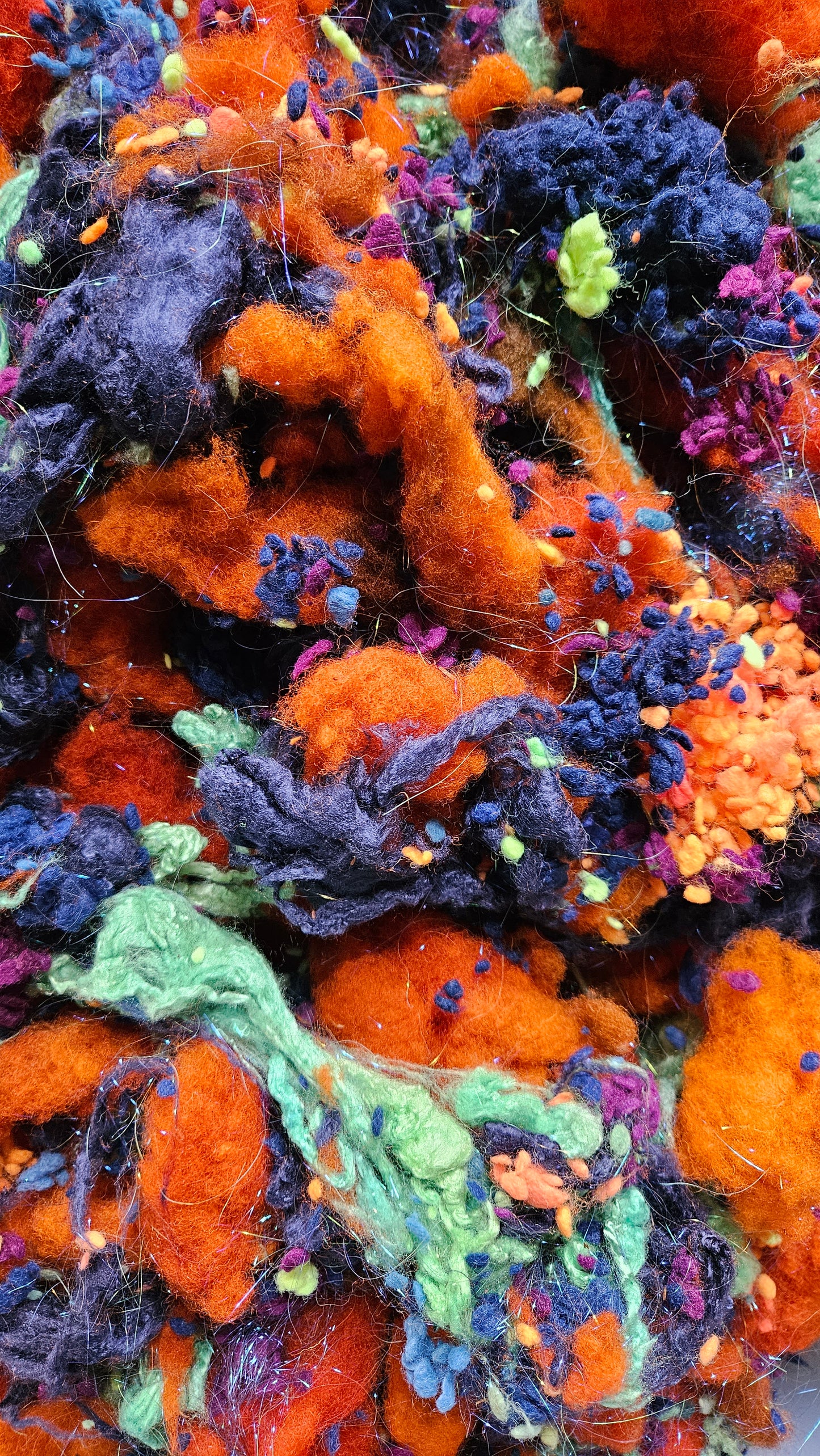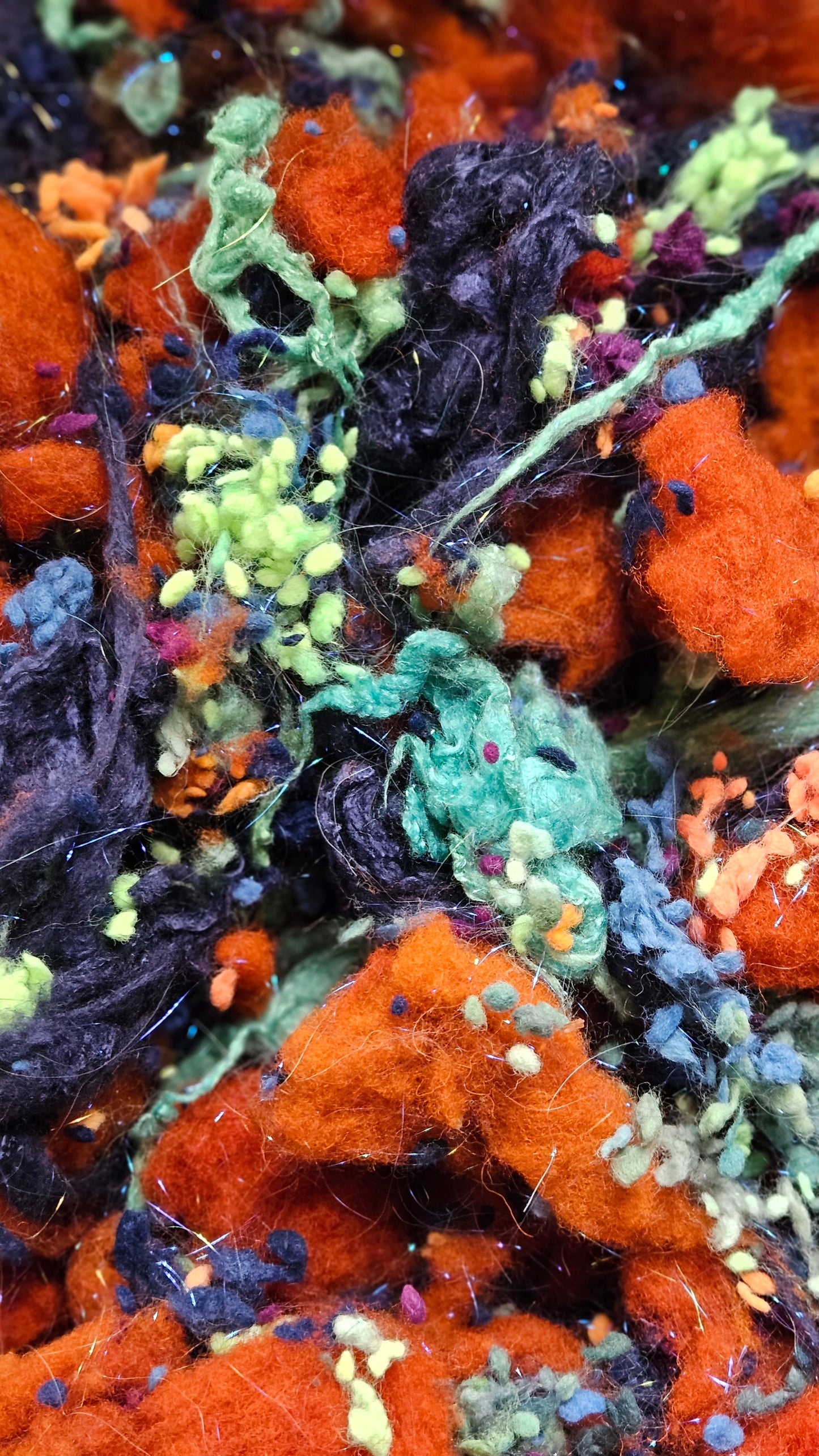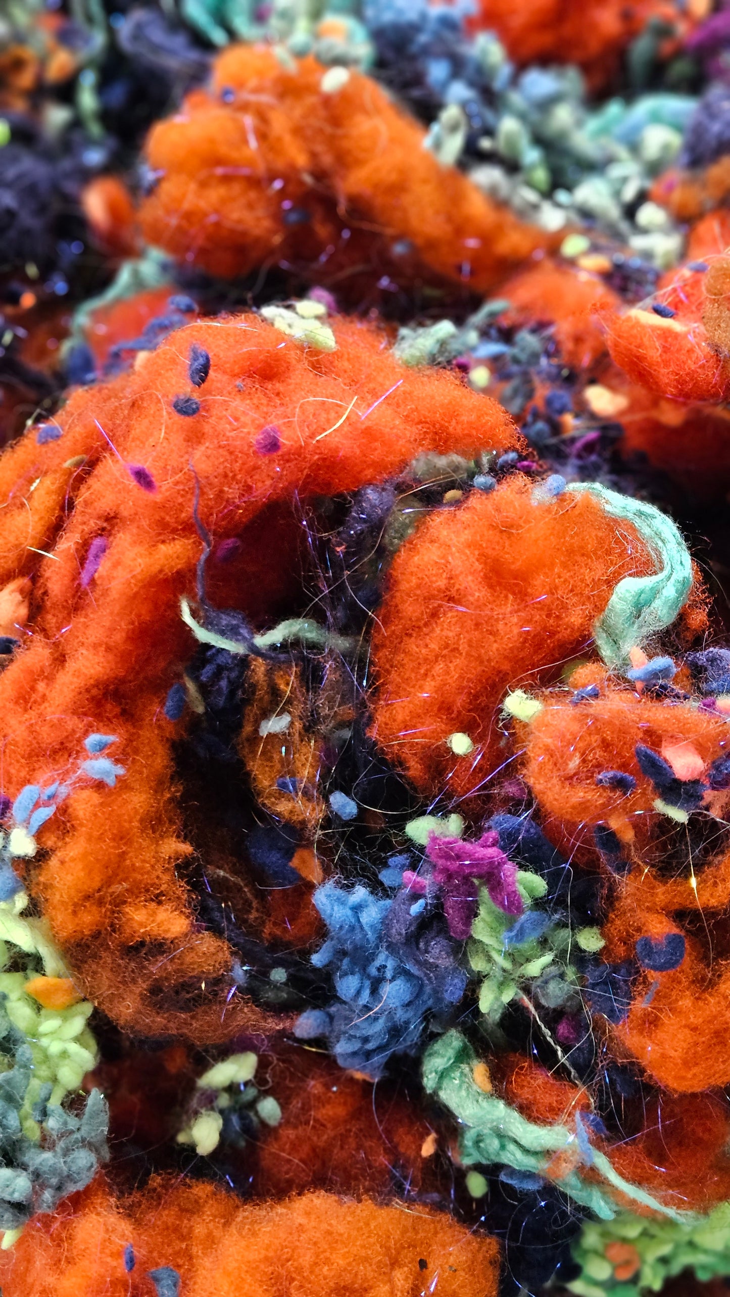 - COTTON NEPPS: Dyed flecks of recycled cotton that are happy to be blended with anything and create a soft polka dot texture like an impressionistic painting.