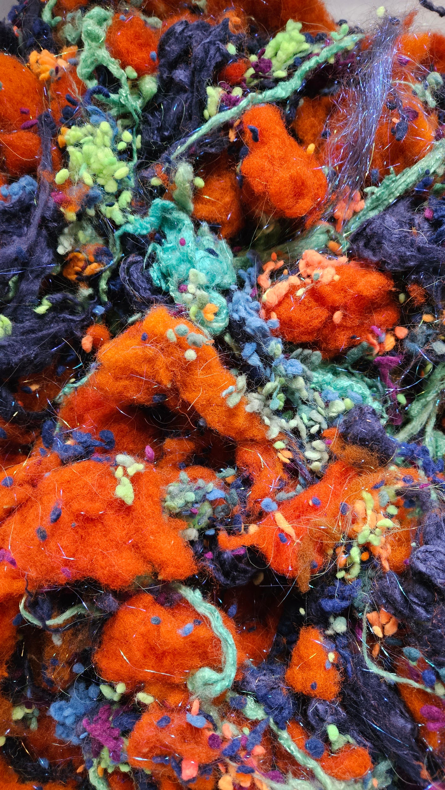 An extra chunky blend of cardable fibers for creating art batts, rolags, or other blends to spin into yarn for knitting, weaving, and crochet. One pinch goes a long way!