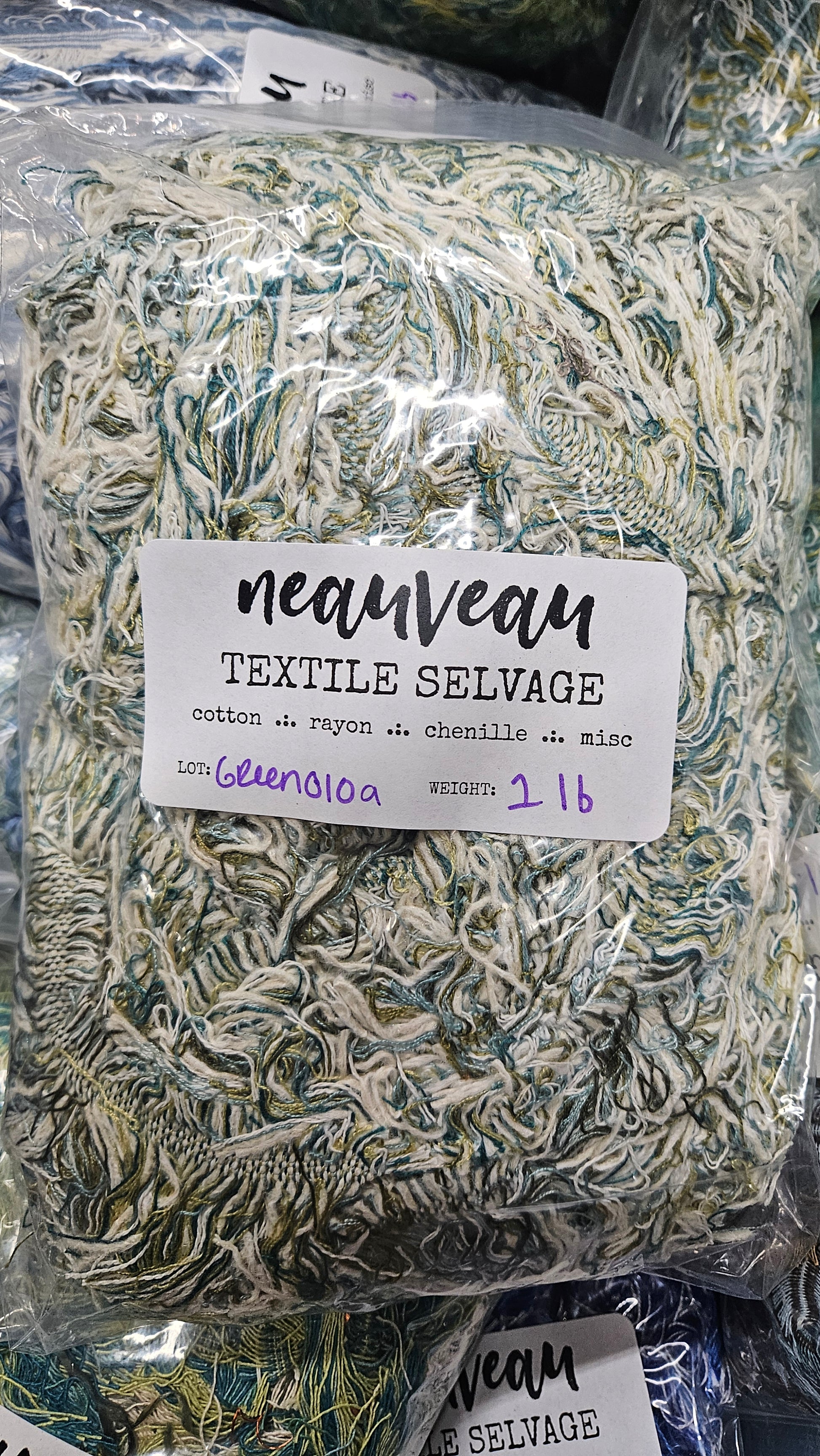 GREEN GRASS - textile selvedge for rug and art weaving and art yarn - GREEN101 (1 lb)