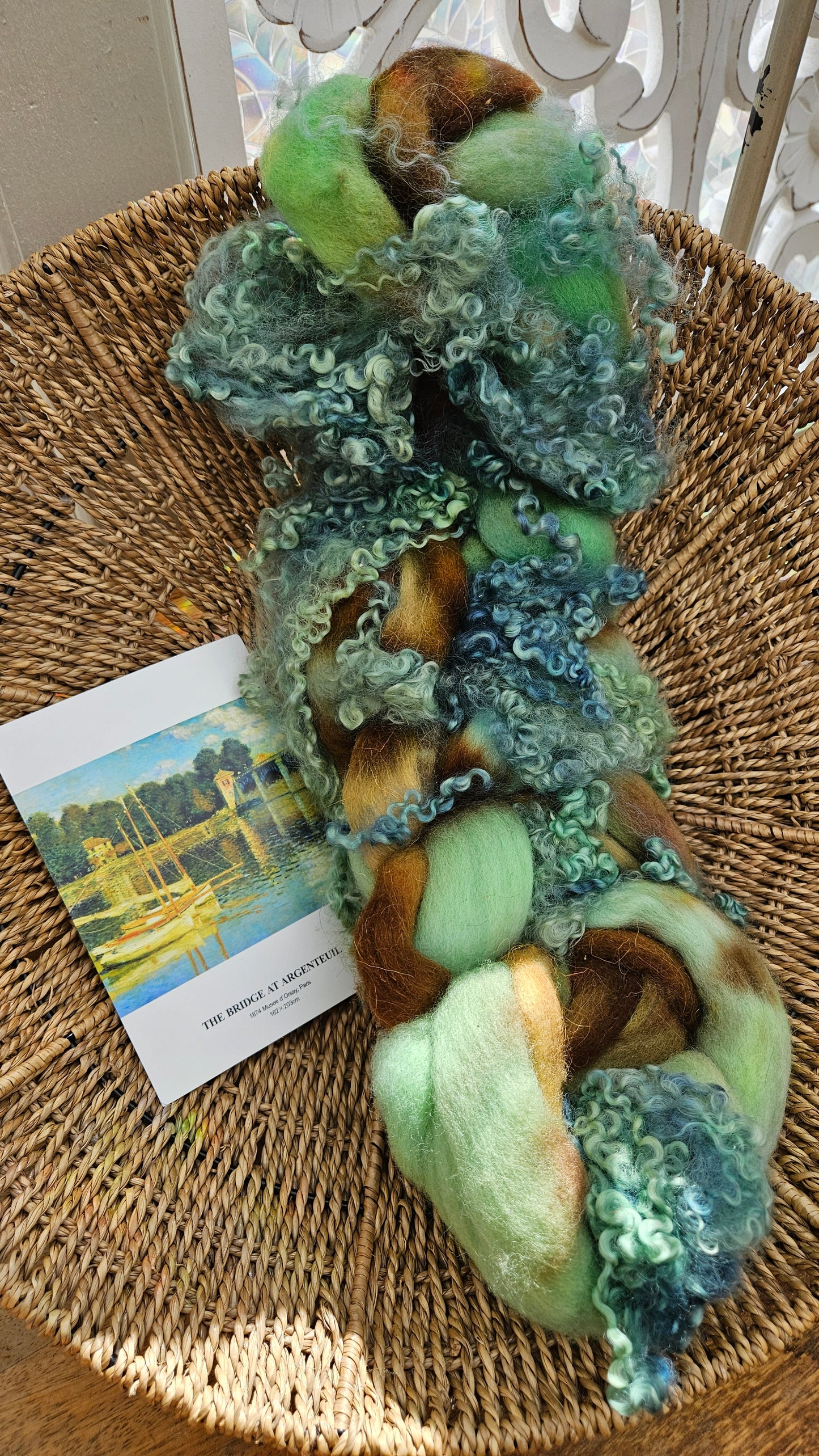 ART ROVING - hand-dyed Polwarth Churro BFL - Monet Bridge at Argenteuil Collection 107 - 4.0 oz