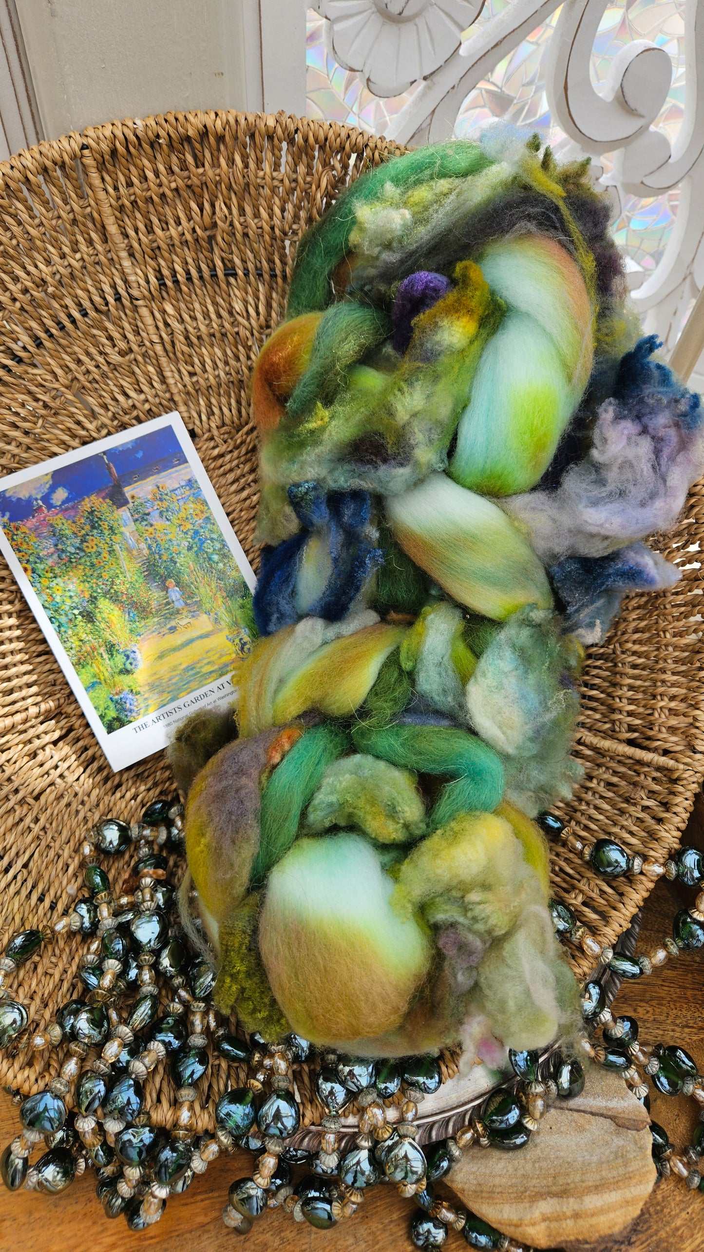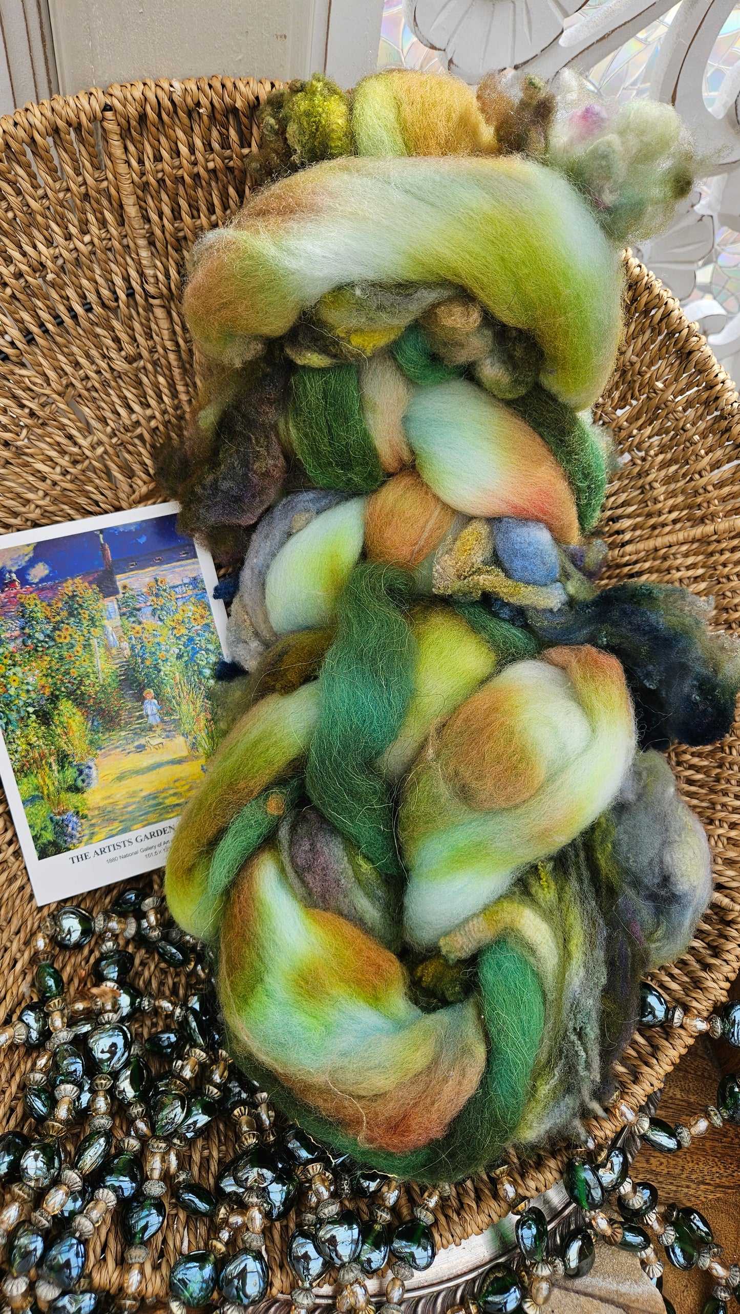 ART ROVING - hand-dyed Polwarth Churro Merino - Monet The Artists Garden 101 - 3.8 oz