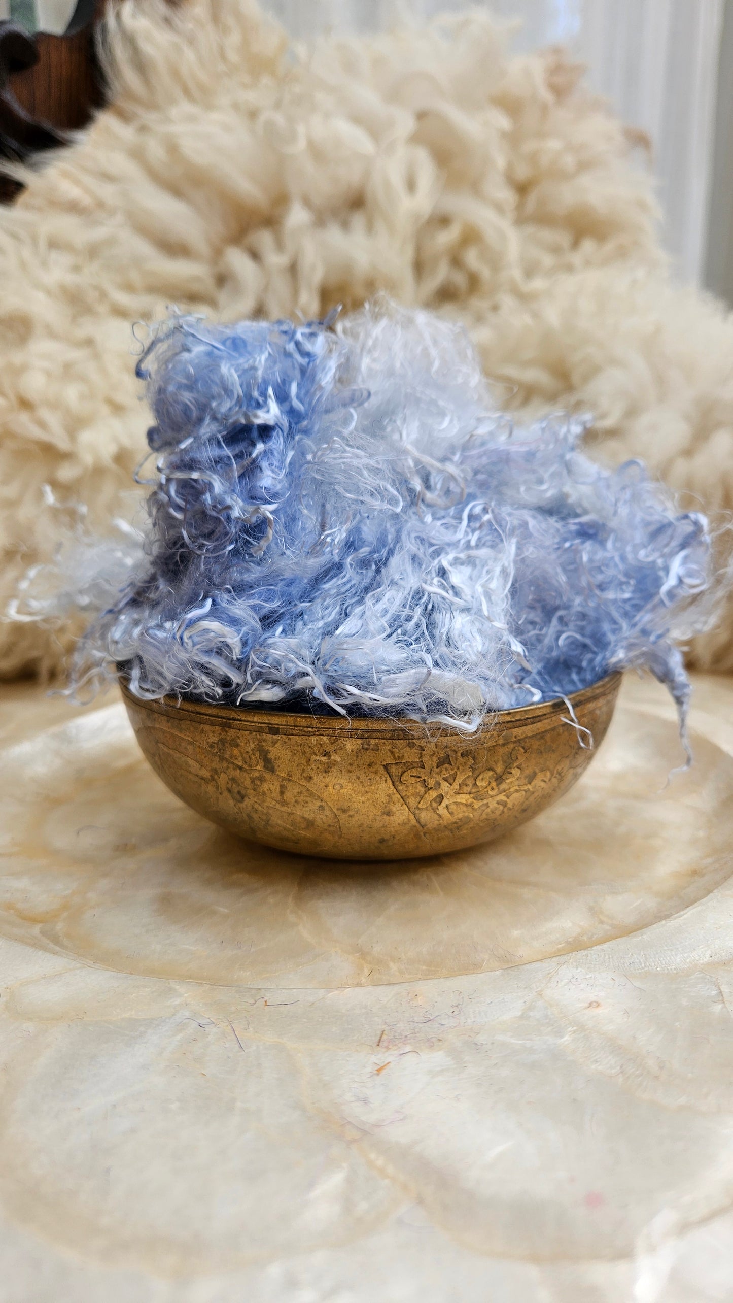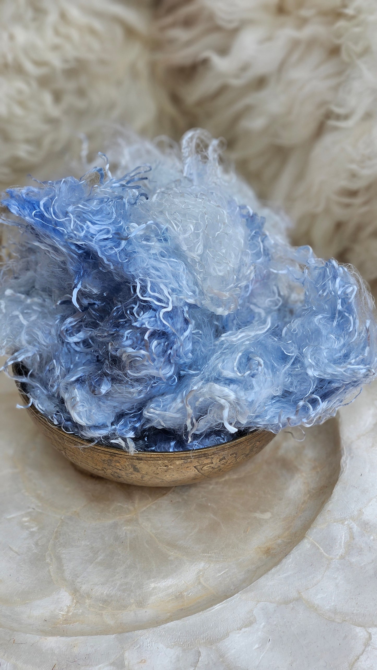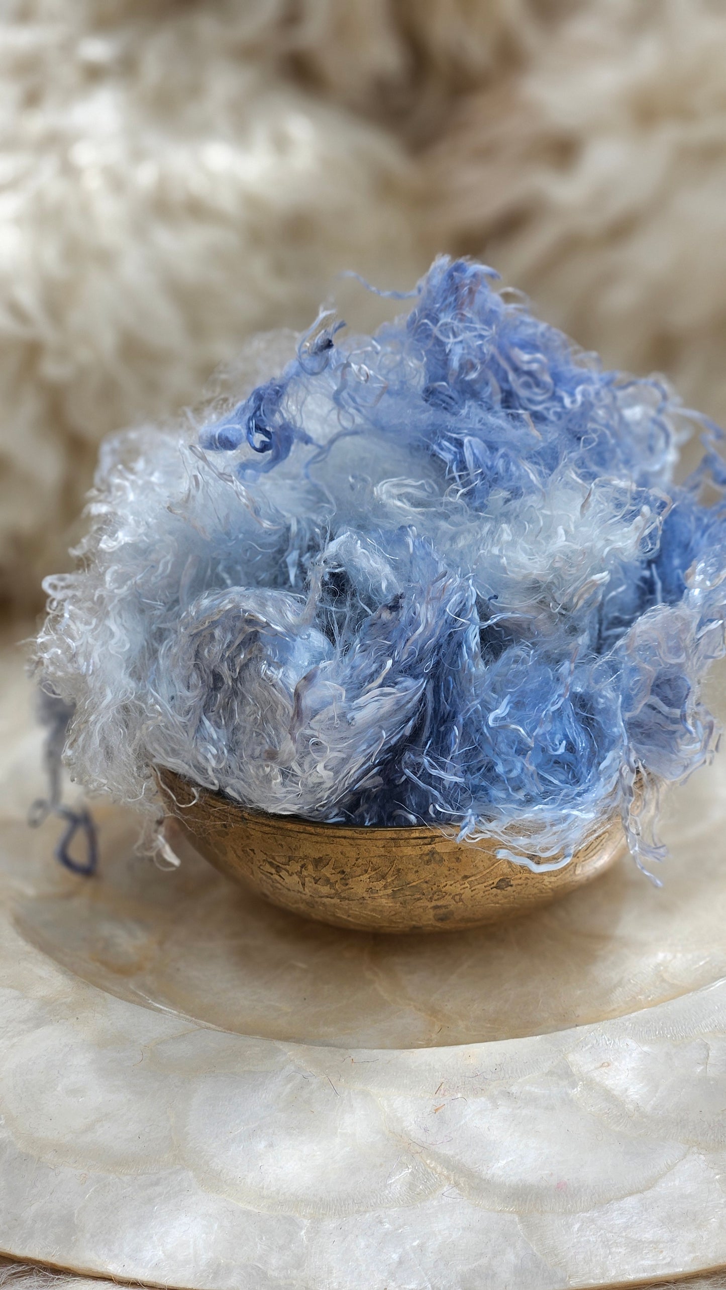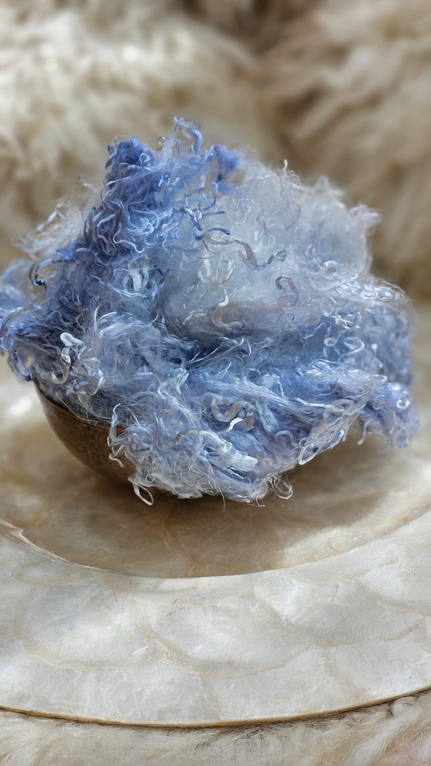 Hand-dyed eucalyptus crimp fiber with silky soft luminescent crimped texture - and perfect for spinning, felting, and papermaking. Sustainably sourced, vegan, plant-based, and artist-dyed in small batches