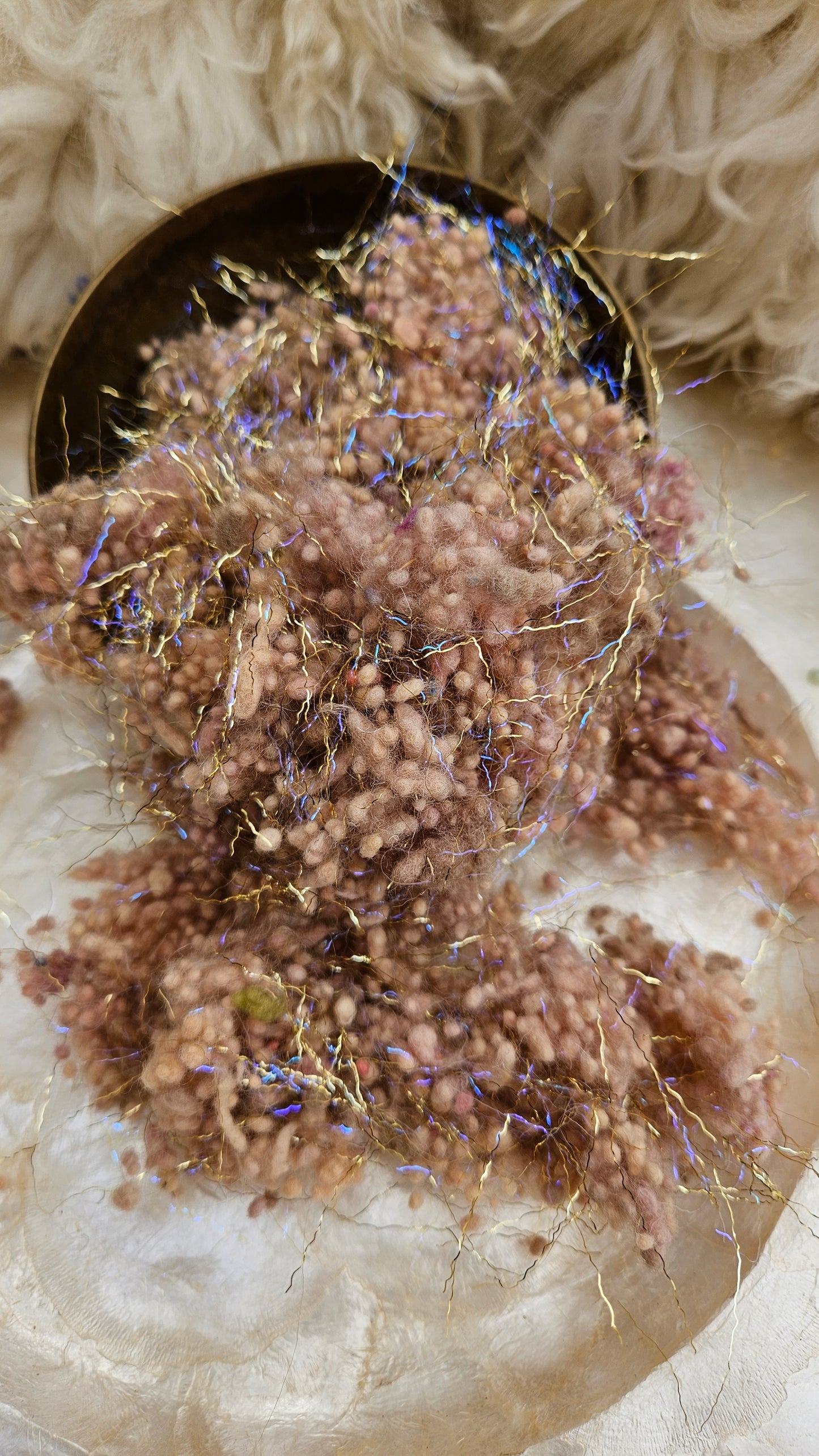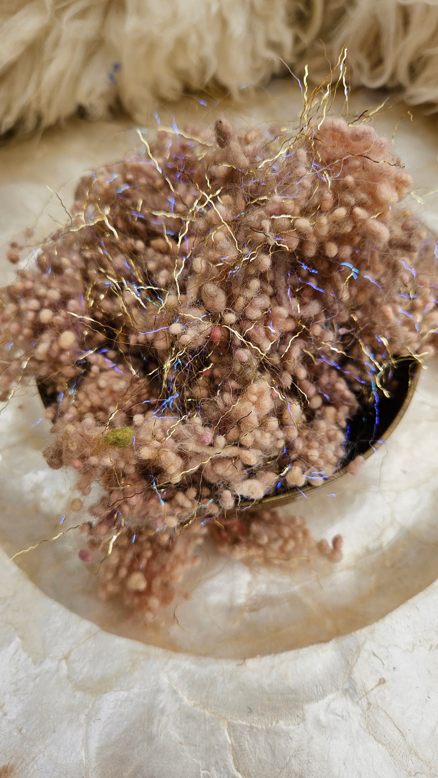 NEUSS GOLD - hand-dyed fine wool nepps with Angelina sparkle for fiber blending and felting - 1 oz | 28 g