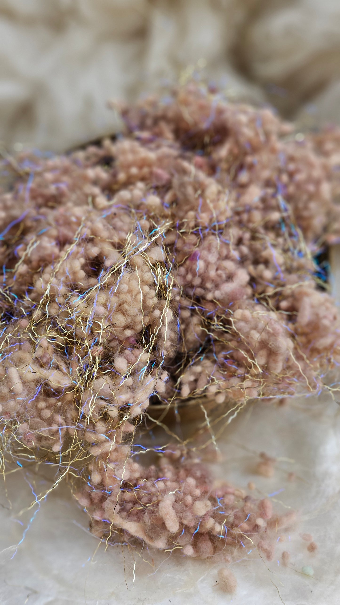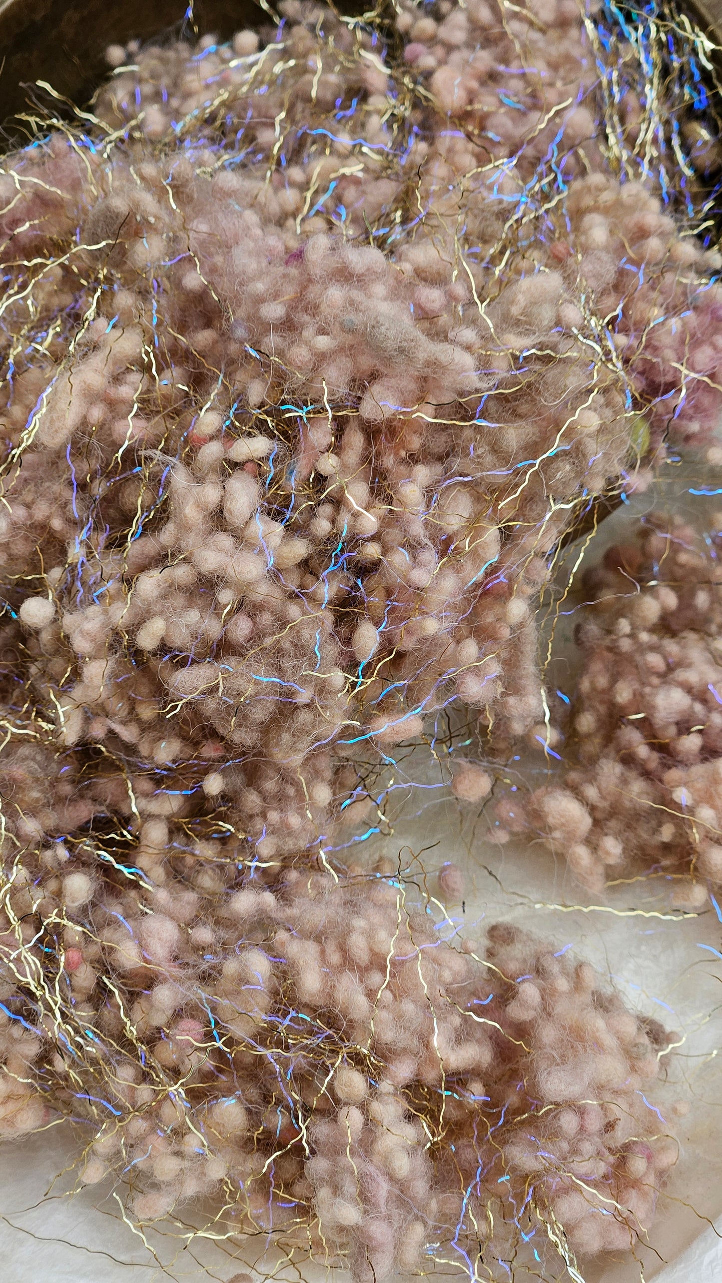 Prevent fall-out when blending and spinning: I recommend using Eucalyptus crimp or any short staple length fuzzy fibers when blending to securely hold the nepps into your yarn. For free videos on carding and spinning wool nepps to prevent fall-out, visit my YouTube channel: youtube.com/@neauveau