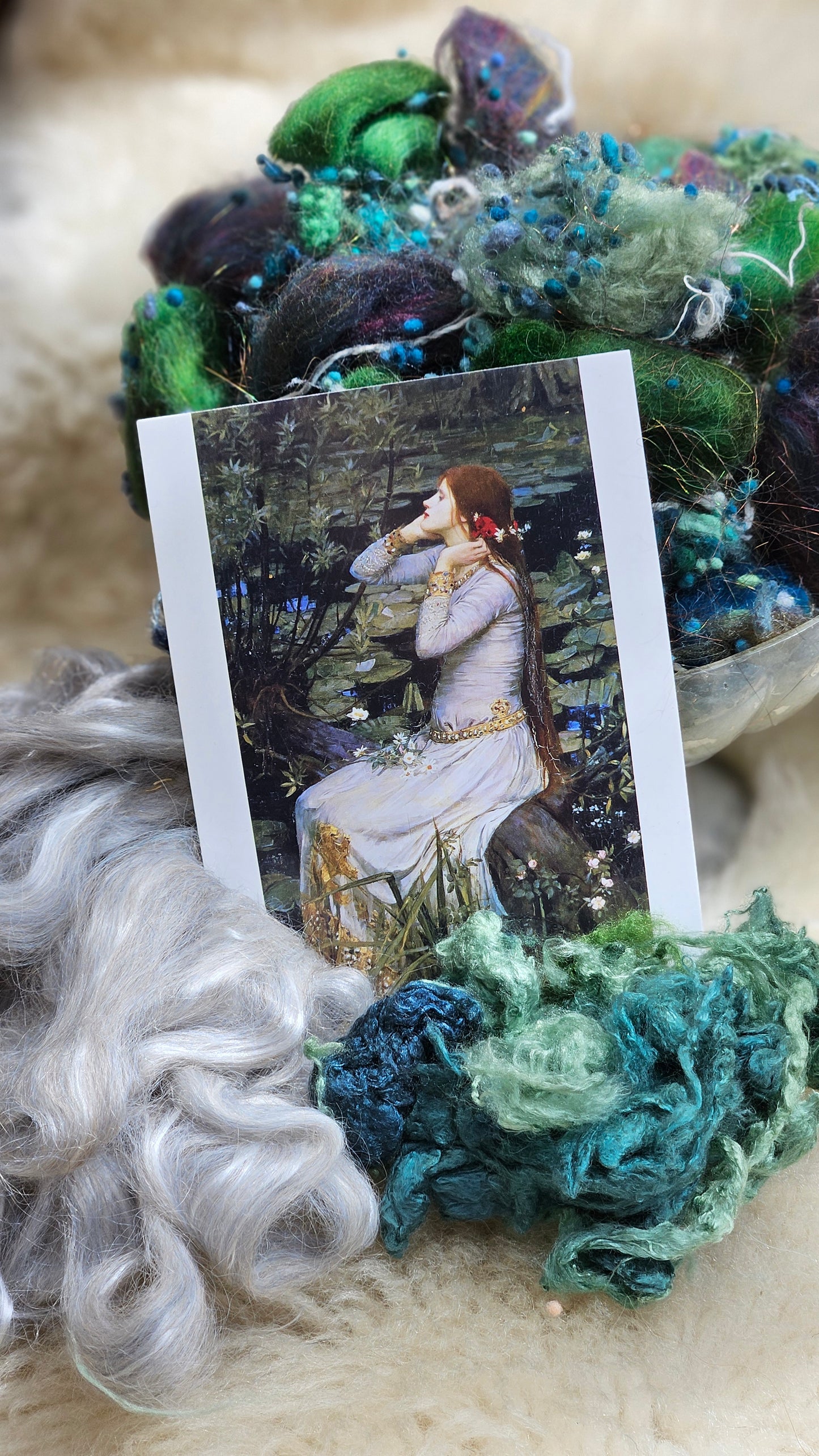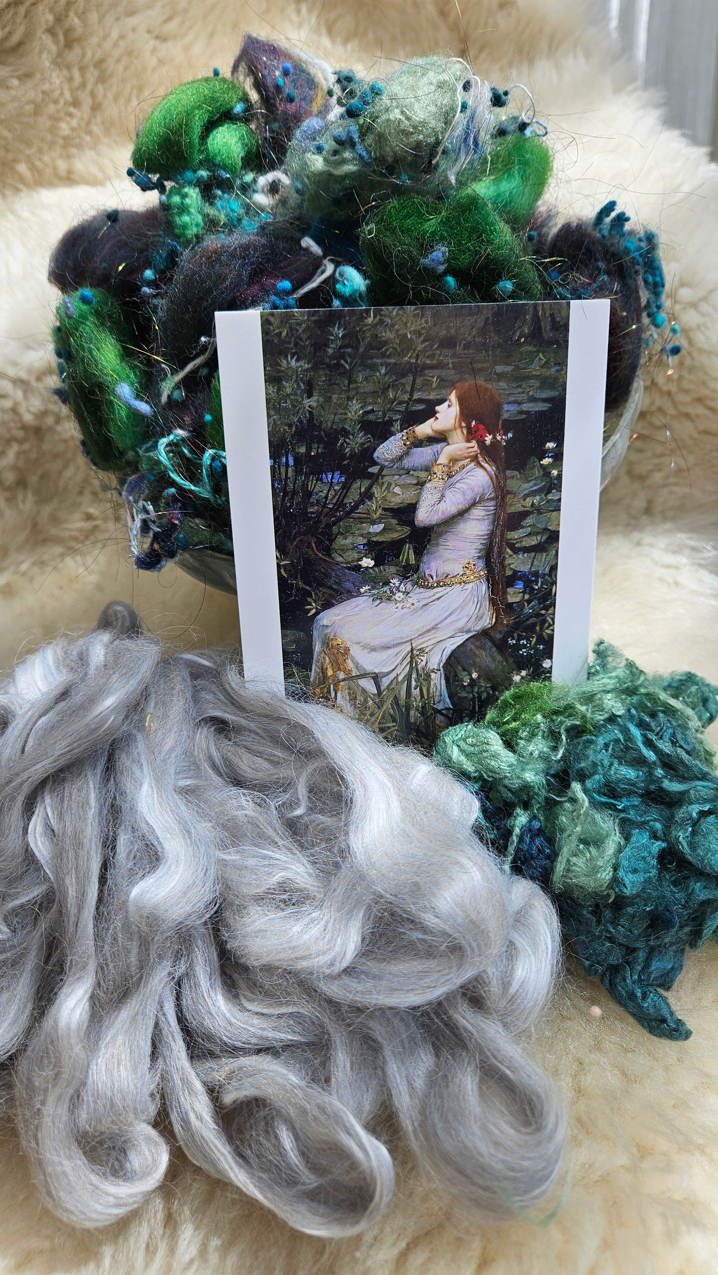 OPHELIA BY THE WATER - limited edition Waterhouse Pre-Raphaelite inspired luxury fiber artist kit for fiber blending and felting - 2.5 oz | 71 g