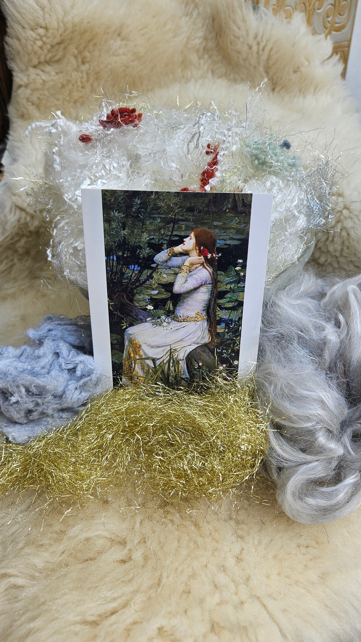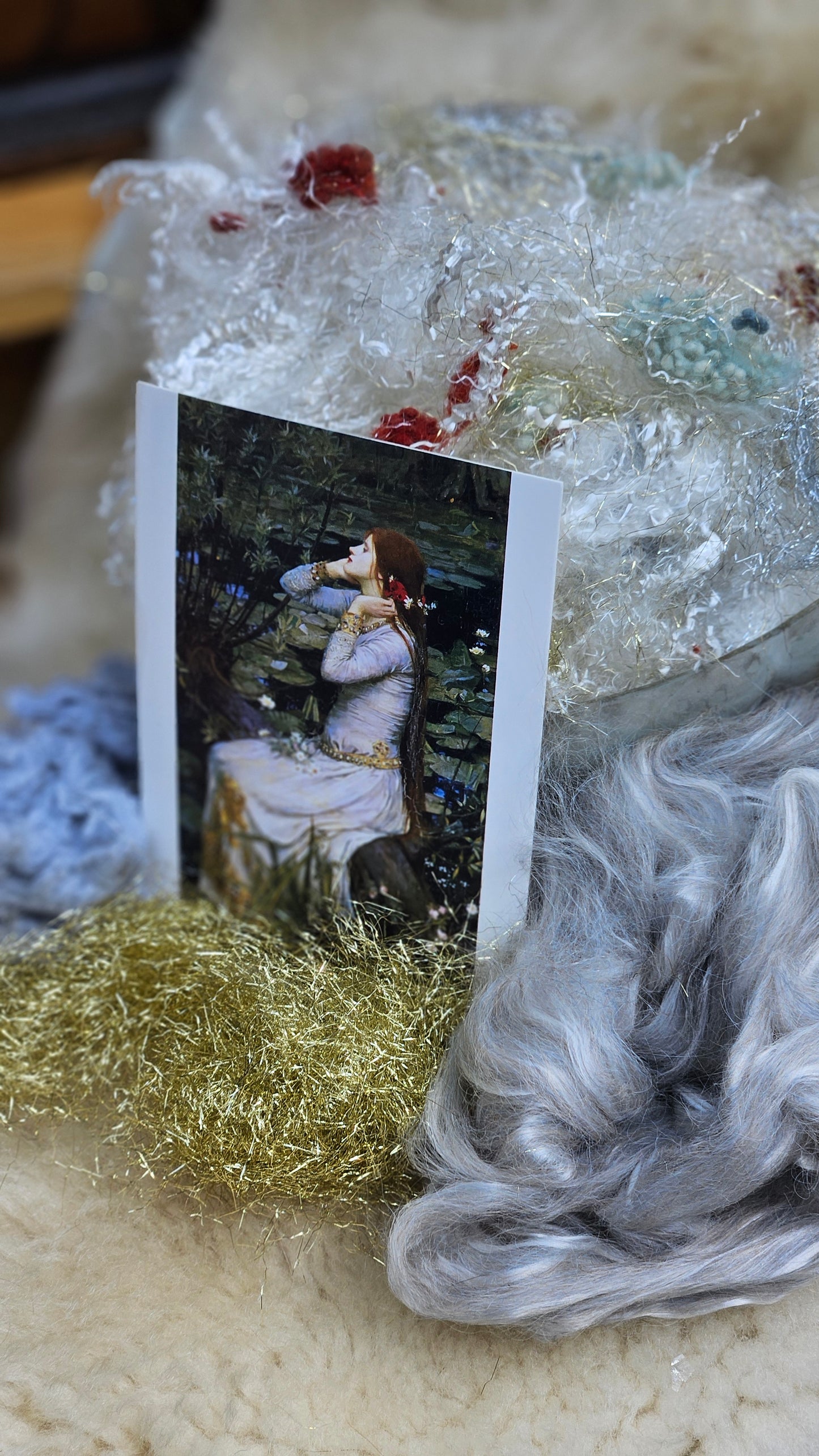 OPHELIA'S SILVER SILK DRESS - limited edition Waterhouse Pre-Raphaelite inspired luxury fiber artist kit for fiber blending and felting - 2.5 oz | 71 g