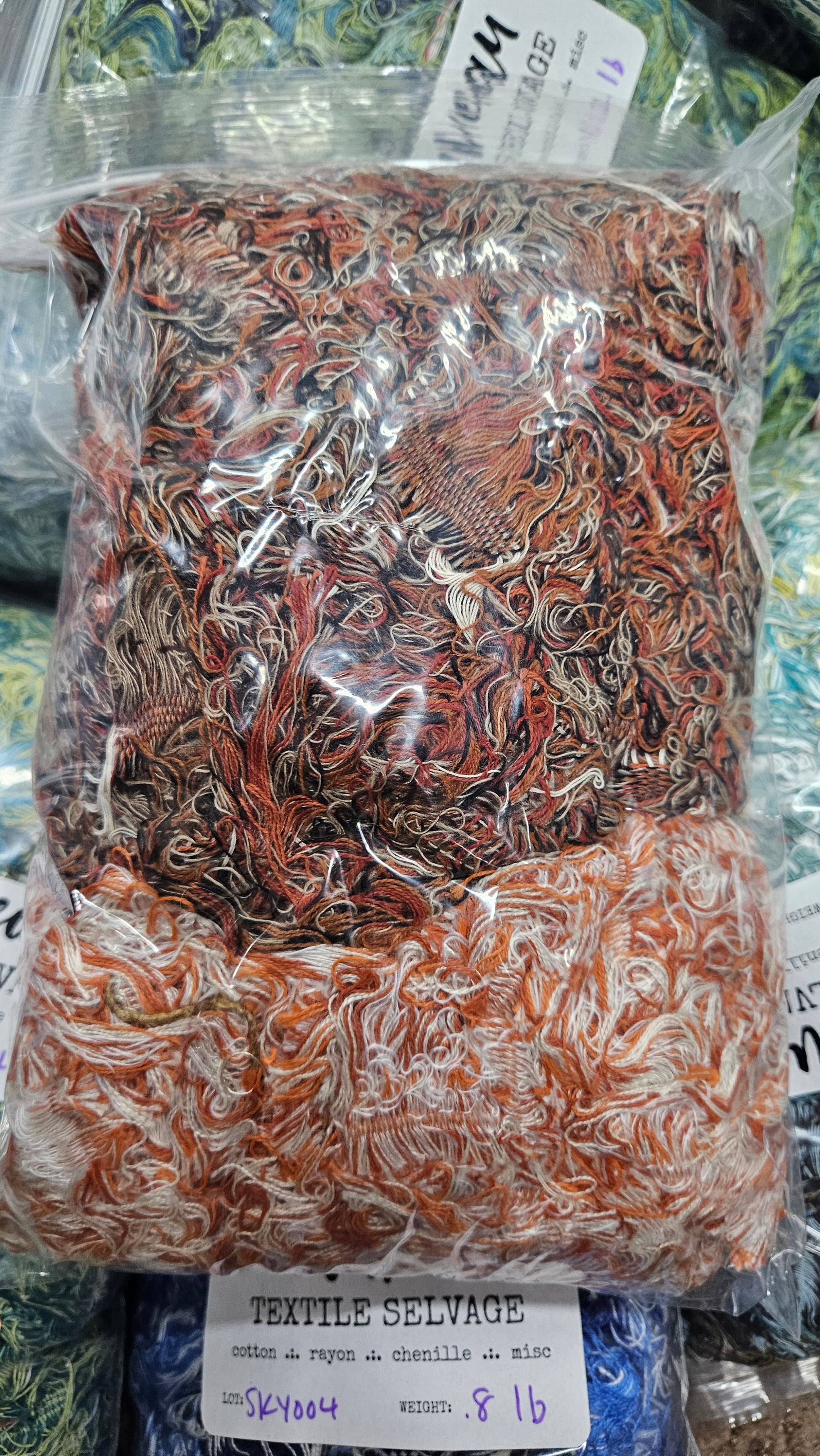 ORANGE GROVE - textile selvedge for rug and art weaving and art yarn - ORANGE002 (1 lb)