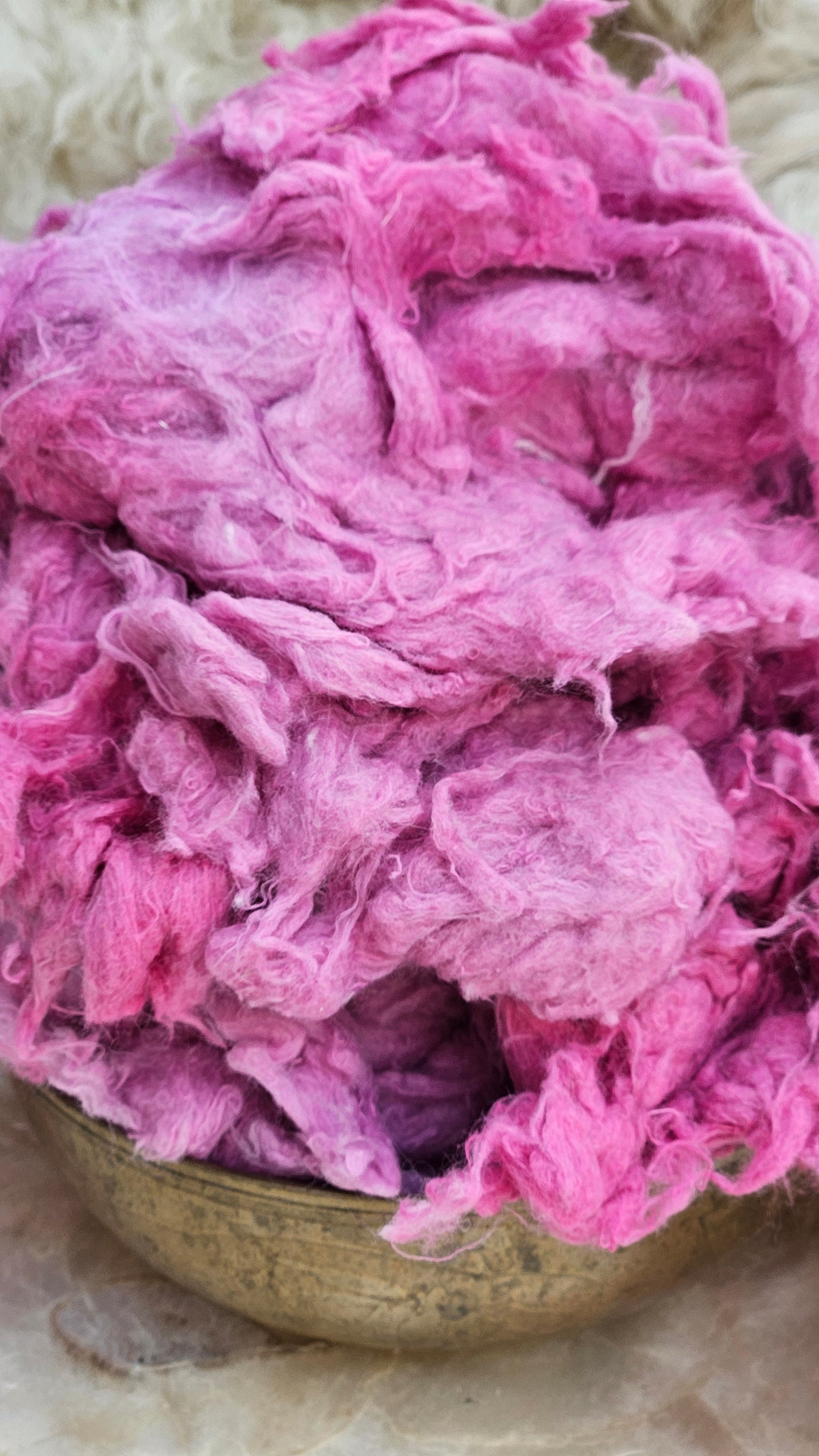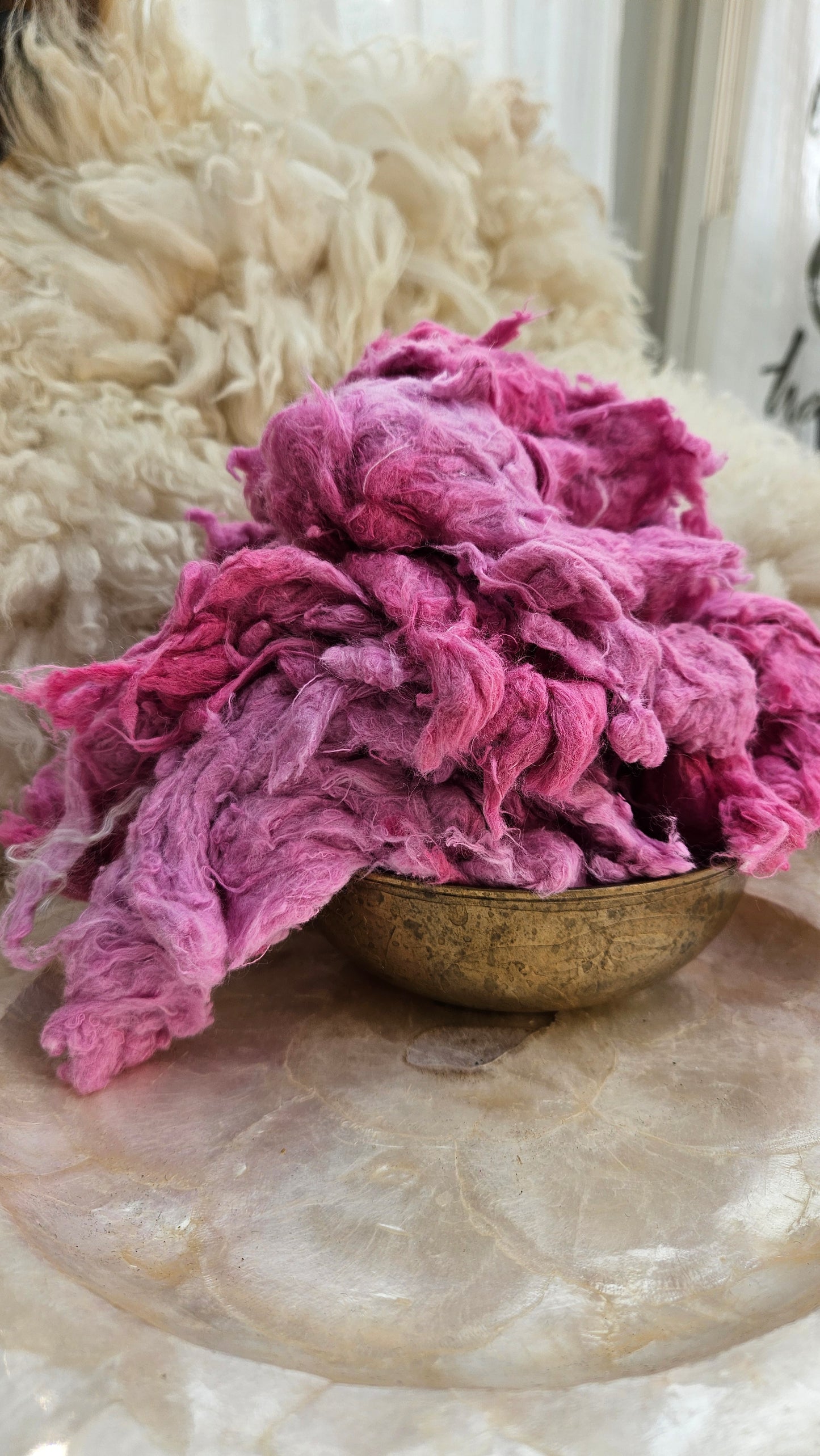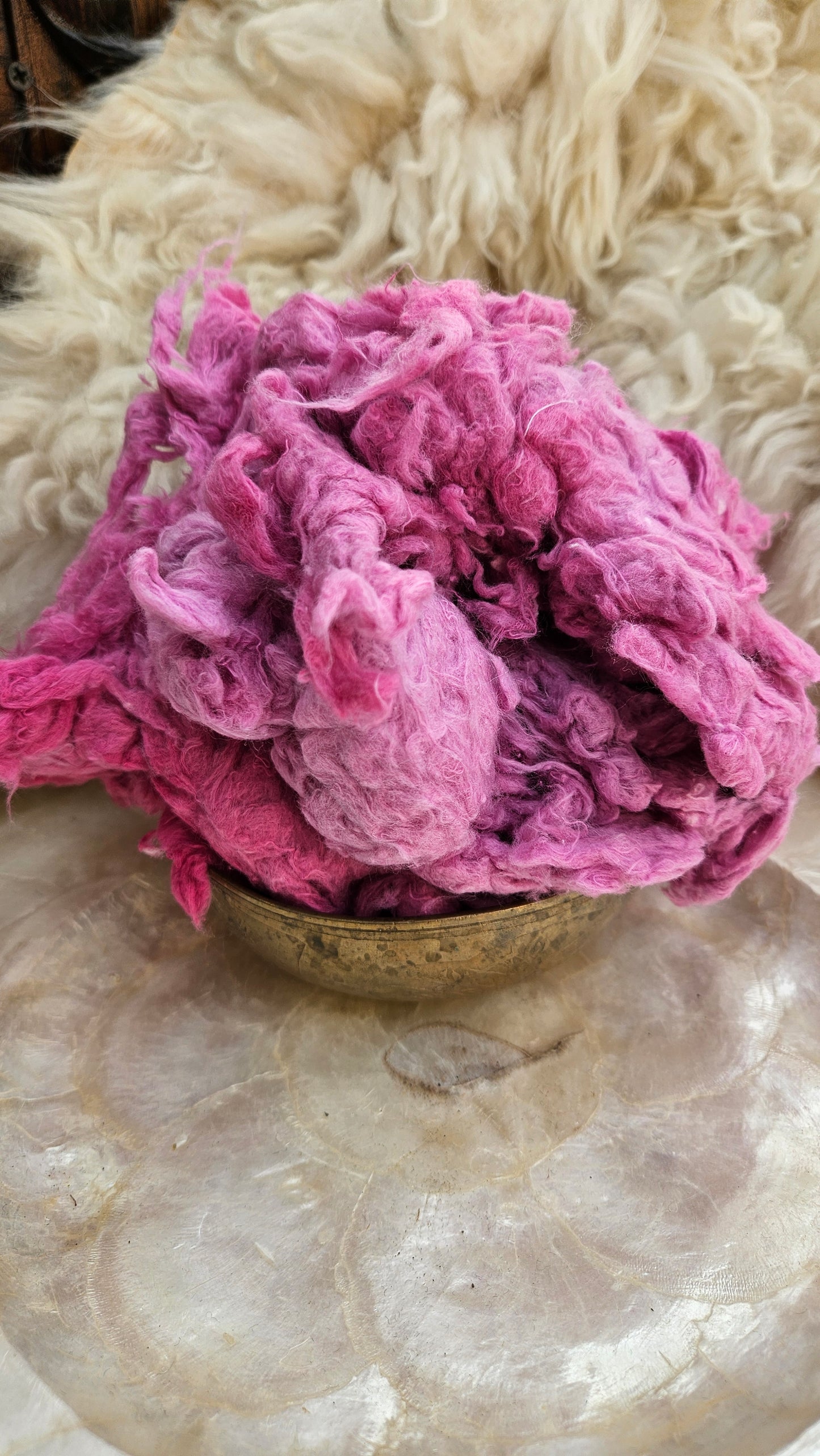 Recycled zero waste hand-dyed cotton noil that pulls apart like feathers and creates a hazy delightful tweed texture in art batts and rolags. Next to skin soft, dense, and textured with fine cut threads.