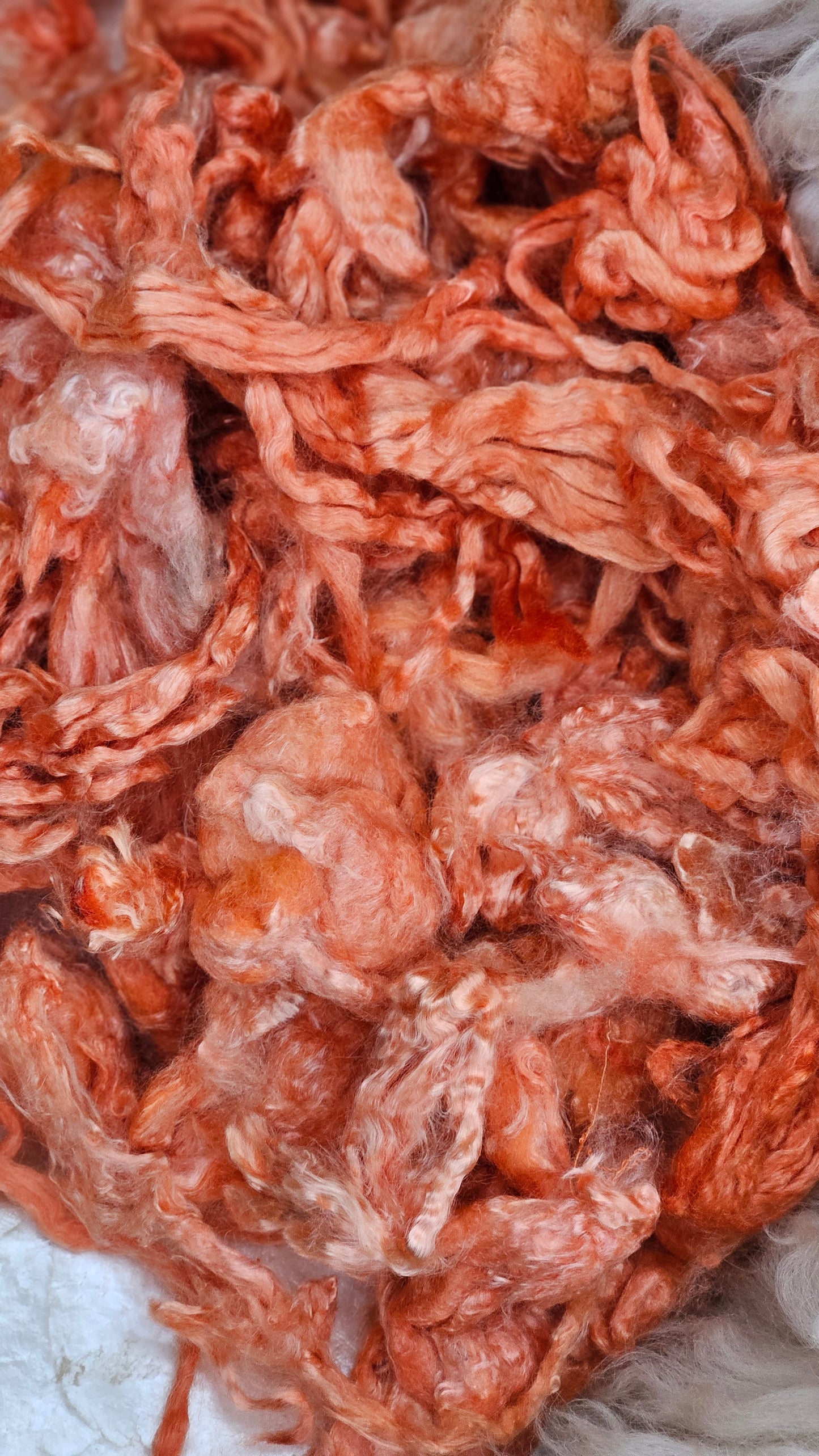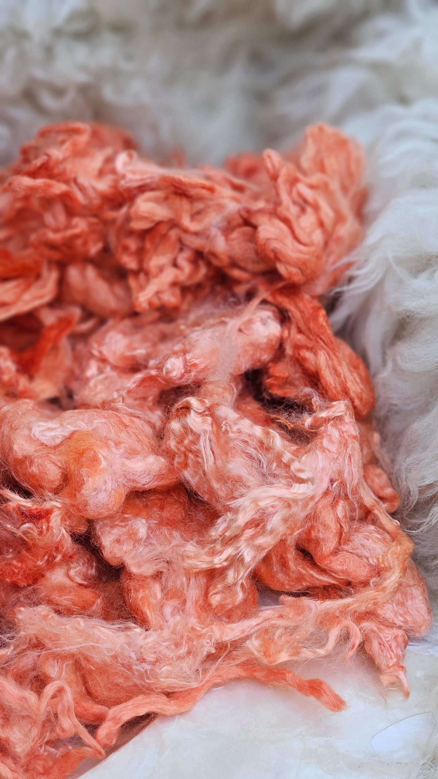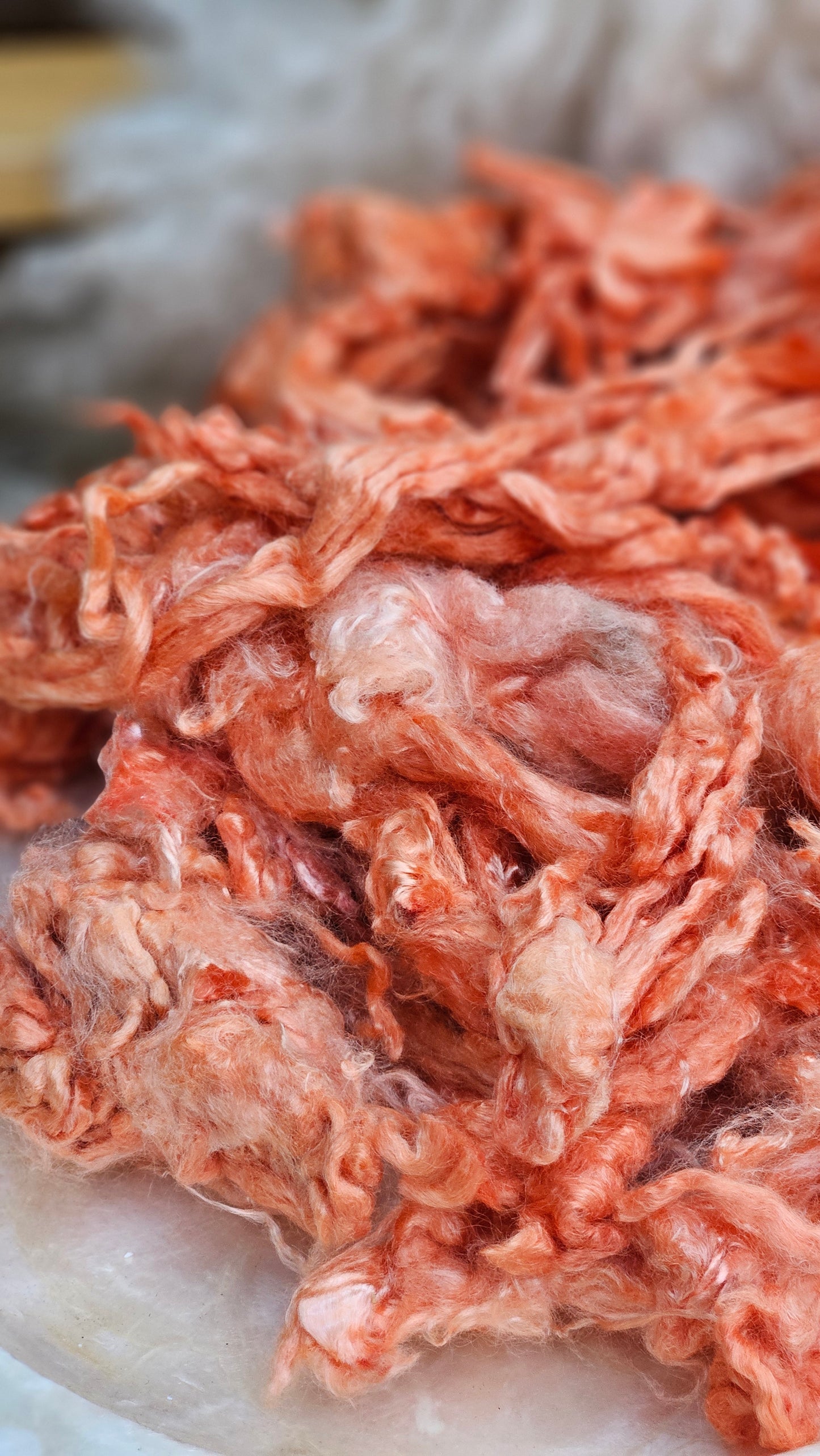 These dense mallowy chunks can be hand-picked very easily to create a fluffy cloud. Running it thru a wool picker would create divine fluffy cloud. This zero-waste fiber is a perfect foundation for art batts, felting, and fiber art.