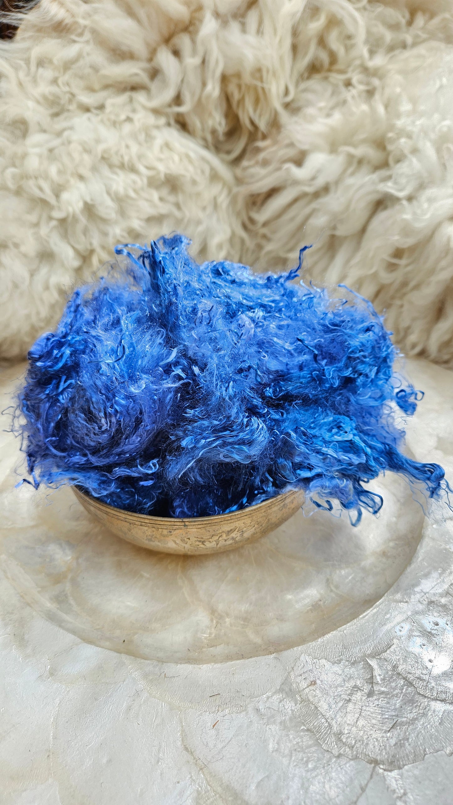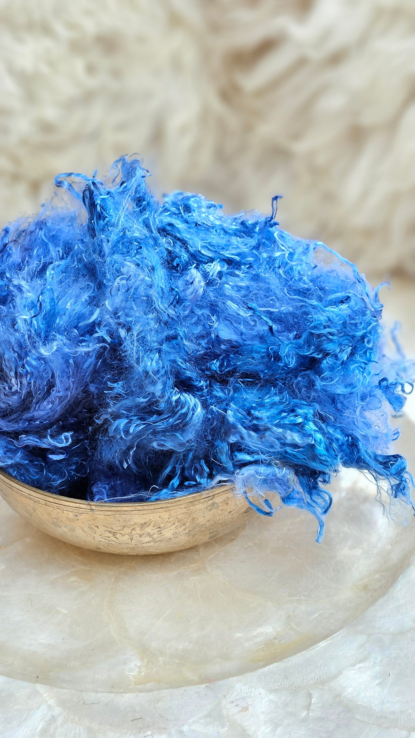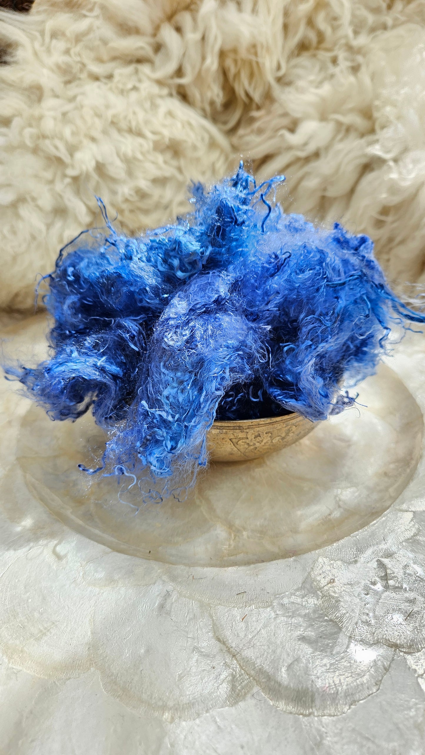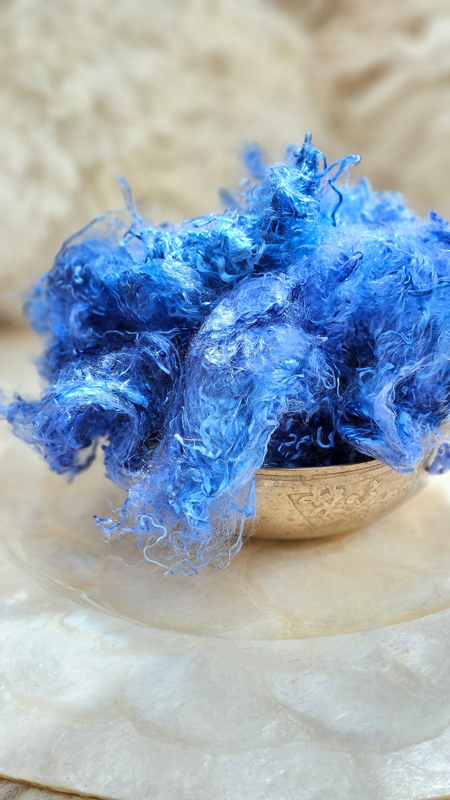 SAPPHIRE - hand-dyed eucalyptus crimp faux-silk for art yarn embellishing, fiber blending, felting, and papermaking - 2 oz | 57 g