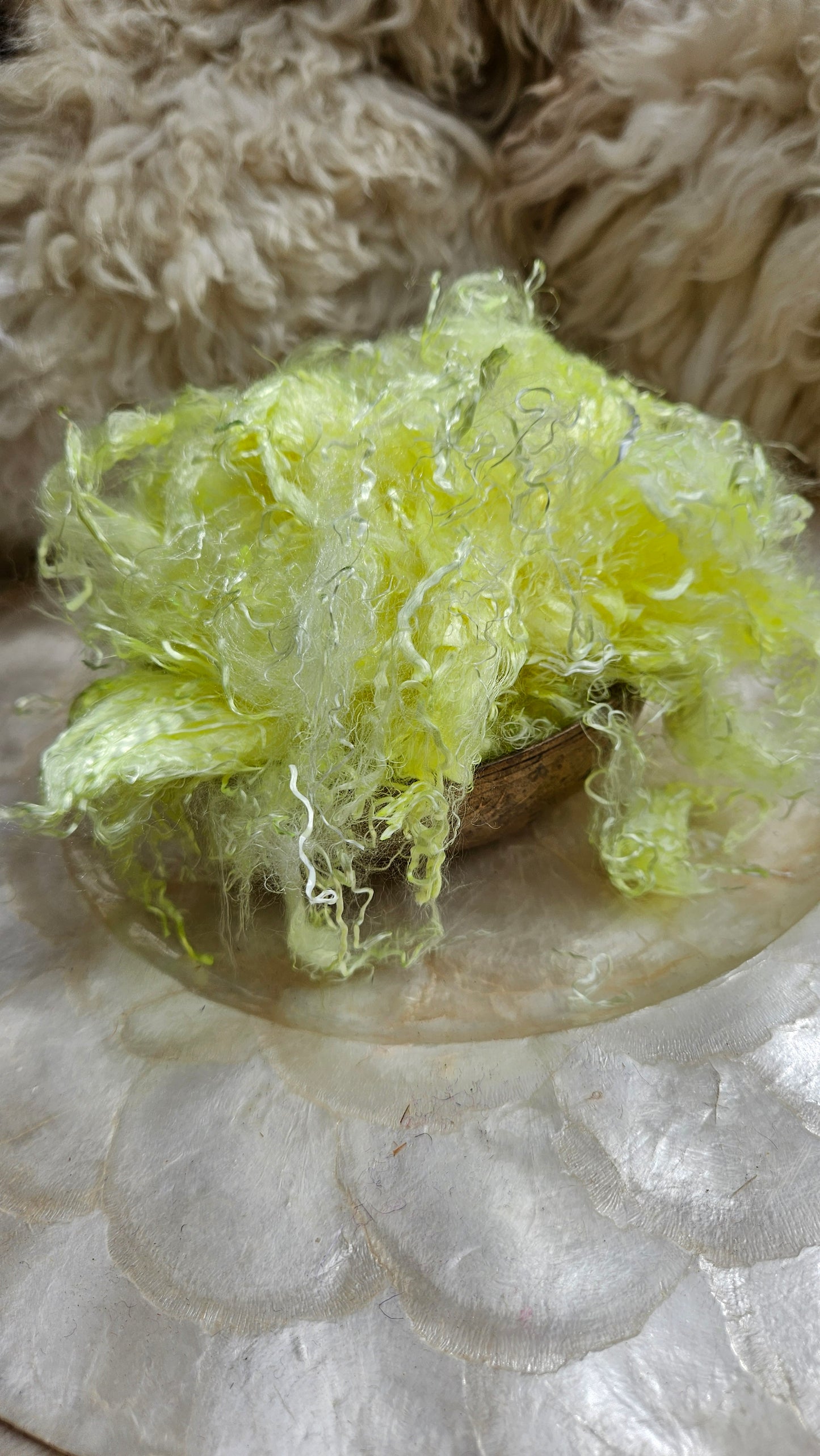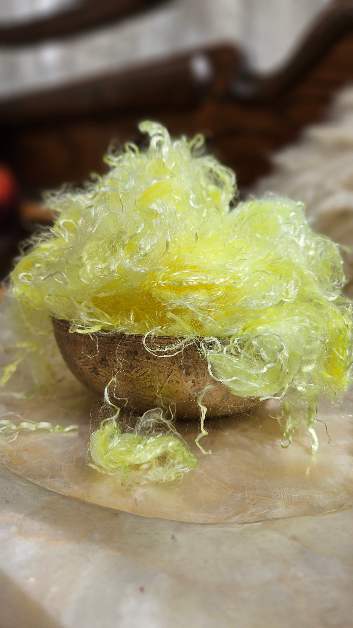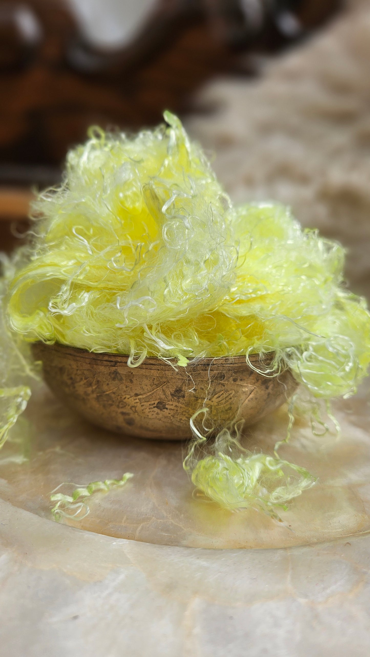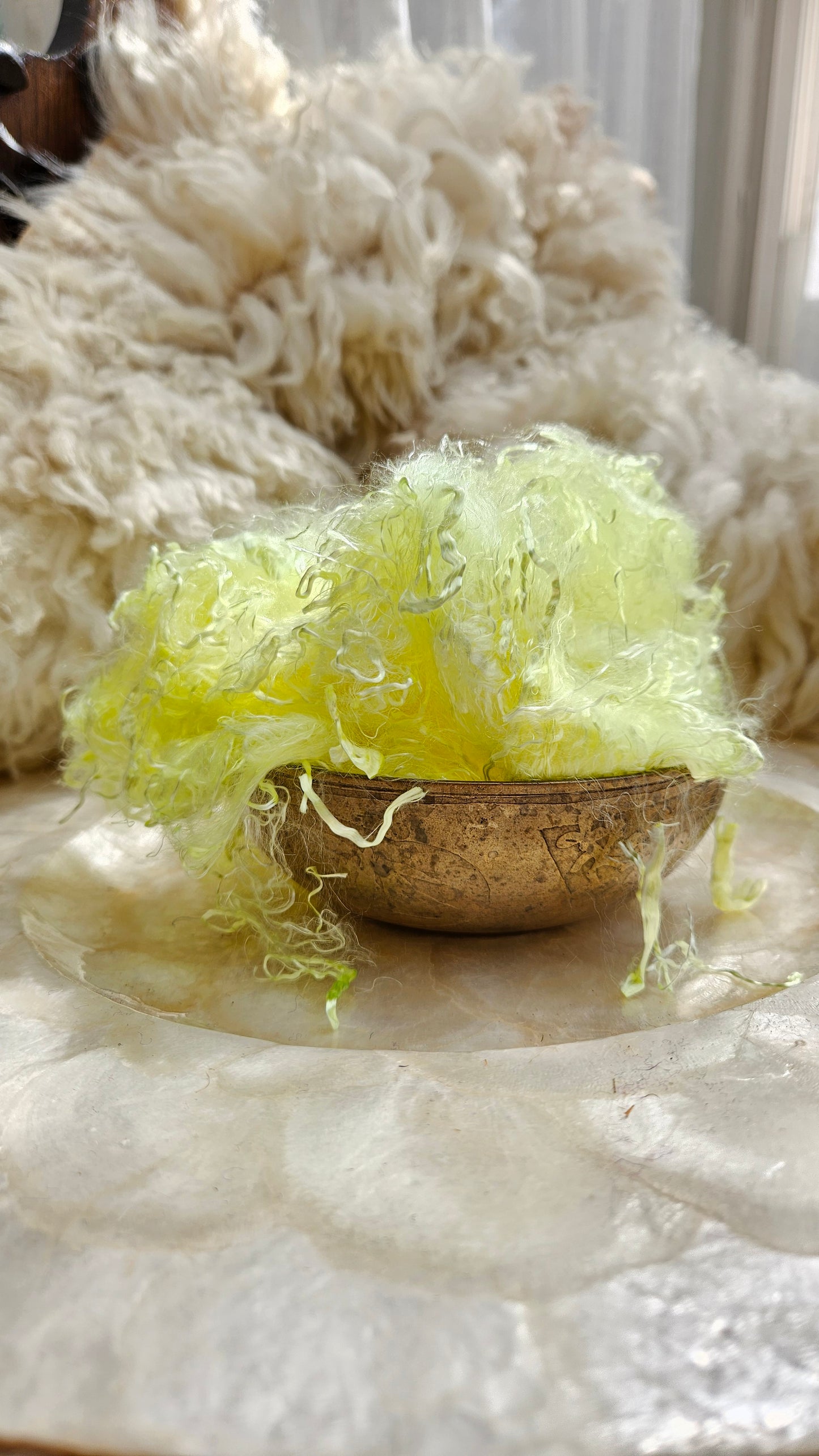 SULPHUR - hand-dyed eucalyptus crimp faux-silk for art yarn embellishing, fiber blending, felting, and papermaking - 2 oz | 57 g