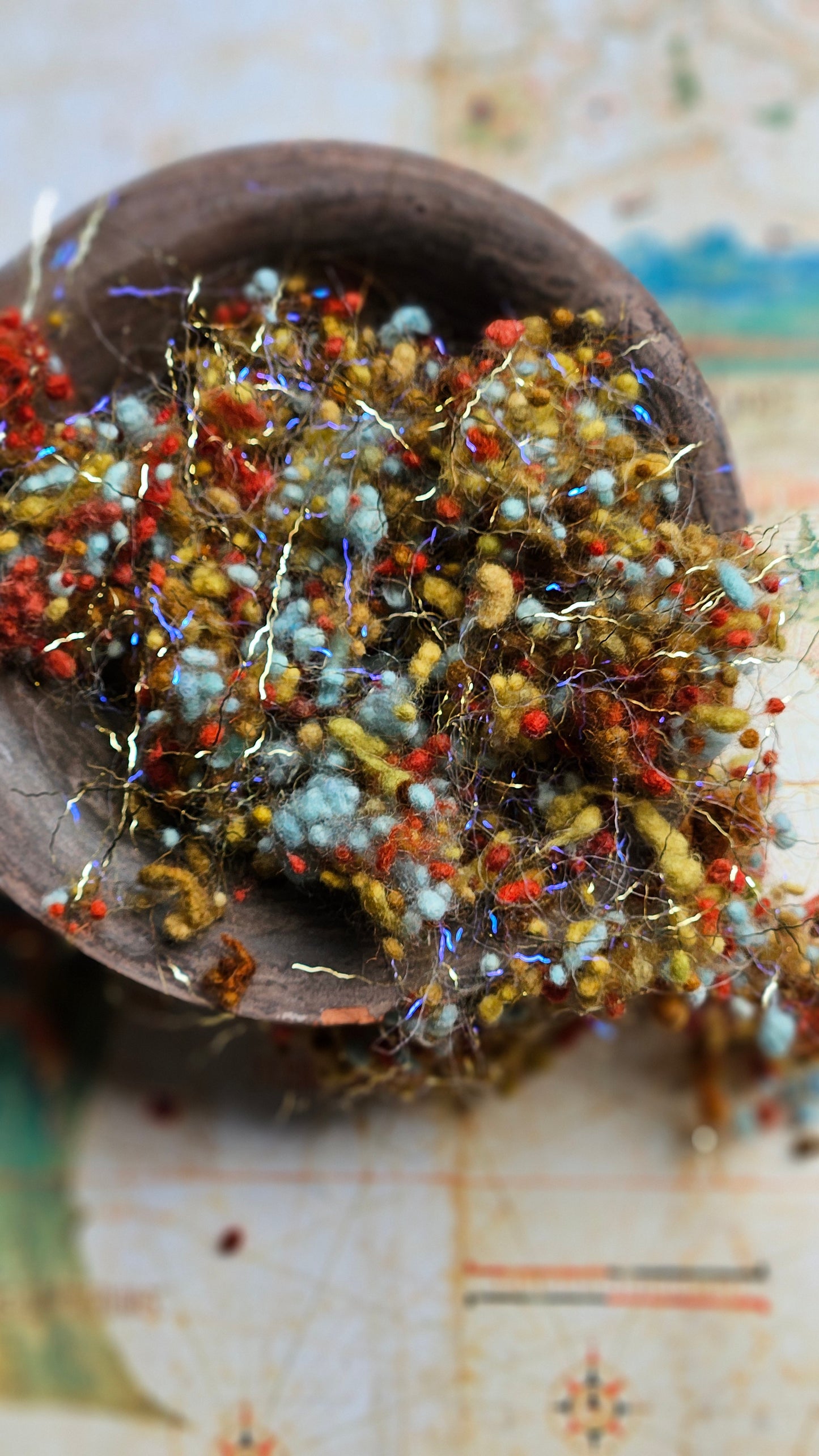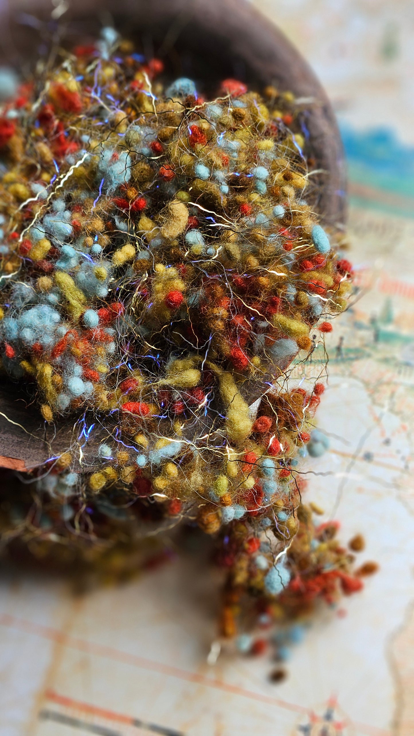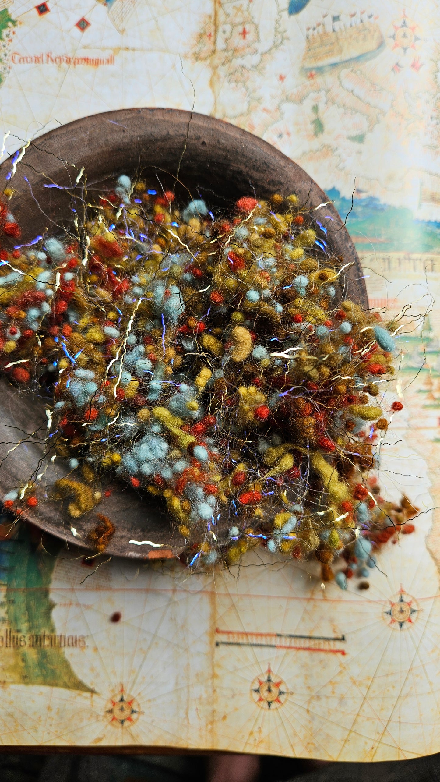 Hand-dyed wool nepps are the confetti of creativity that bring your fiber art to life. Each tiny ball of wool carries color, character, and whimsy - perfect for spinners, felters, weavers, and mixed-media makers. Add pops of texture, speckles of color, and painterly dimension to your spinning, felting, papermaking, and mixed media projects with fine wool nepps.