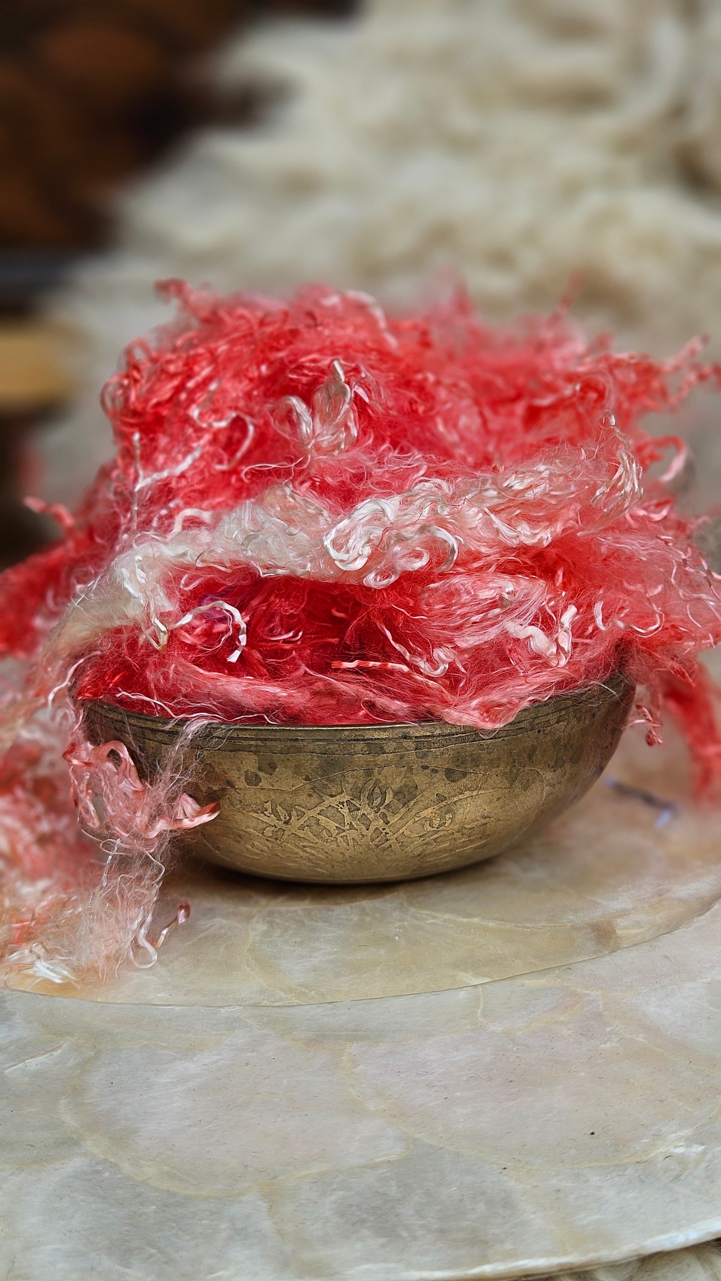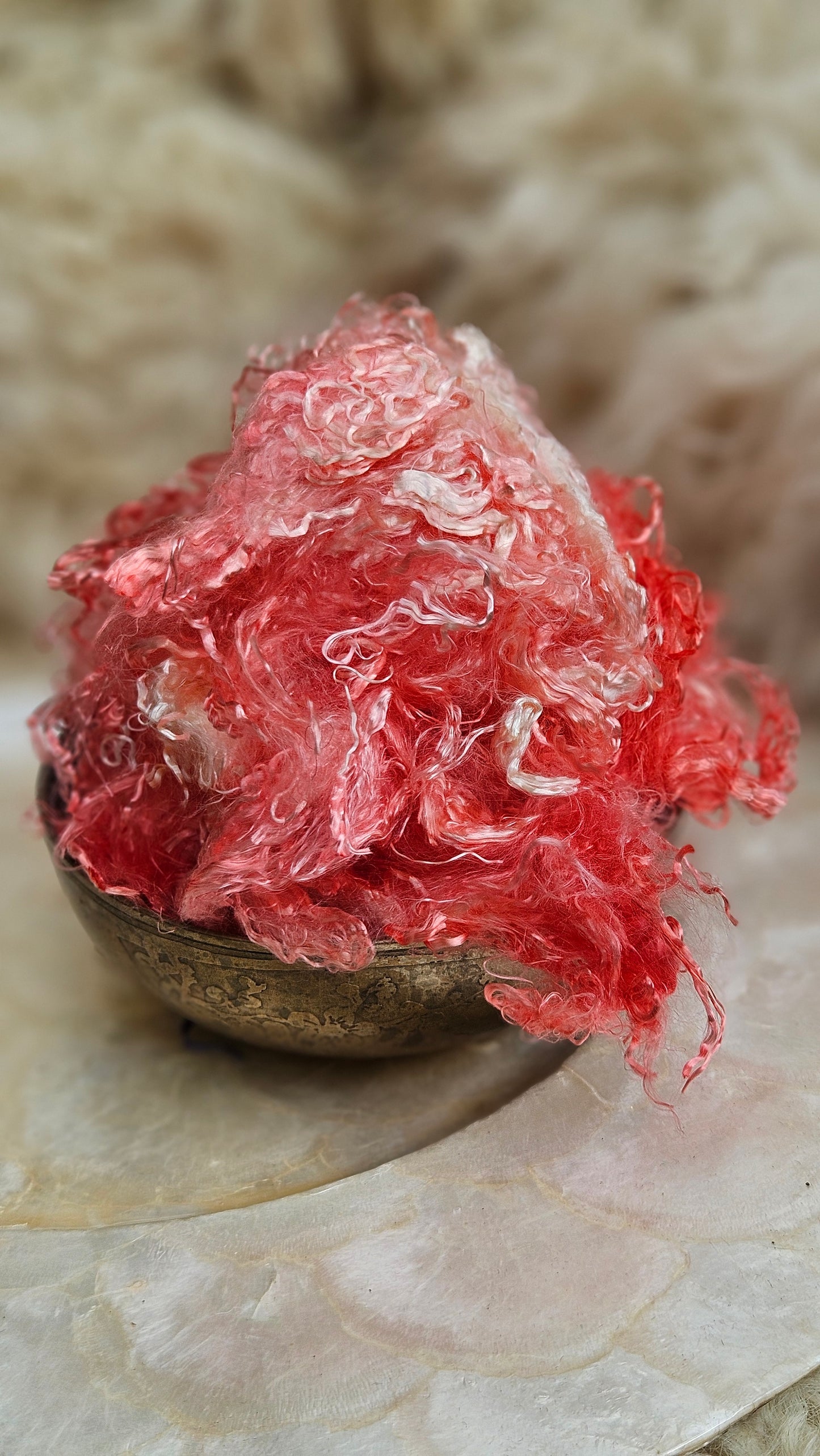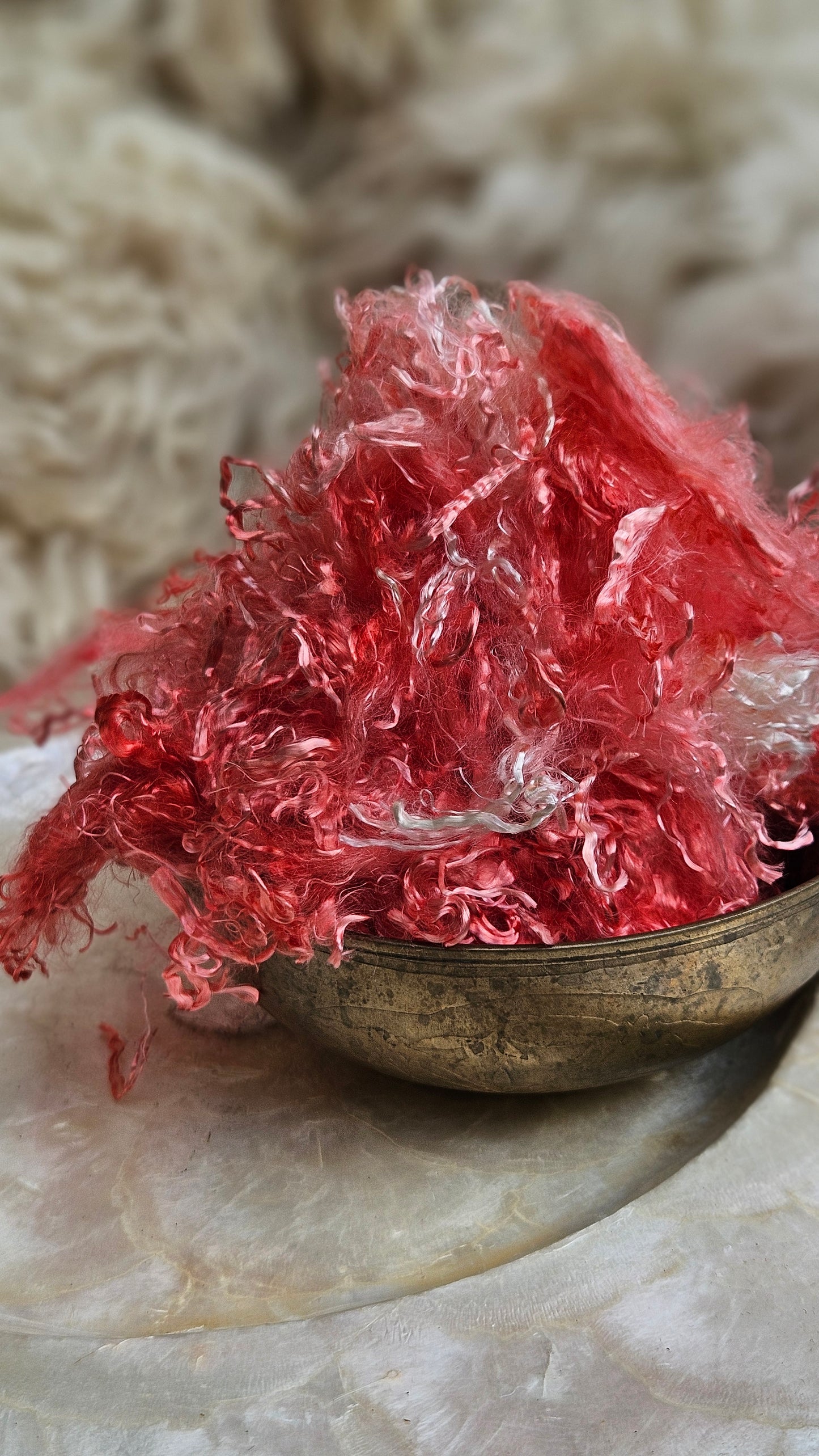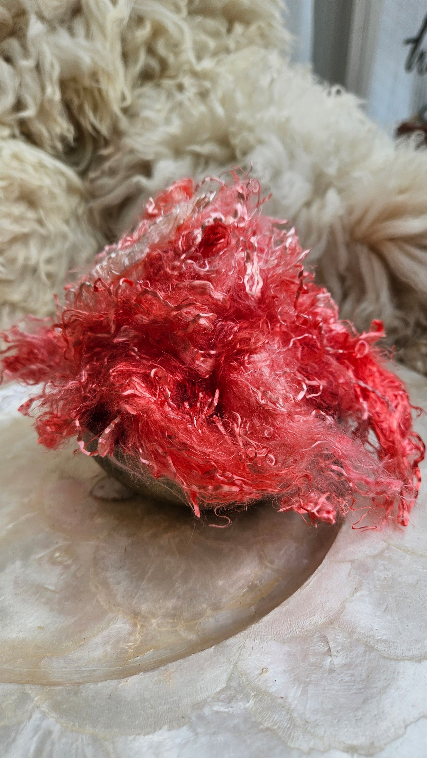 CORAL - hand-dyed eucalyptus crimp faux-silk for art yarn embellishing, fiber blending, felting, and papermaking - 2 oz | 57 g