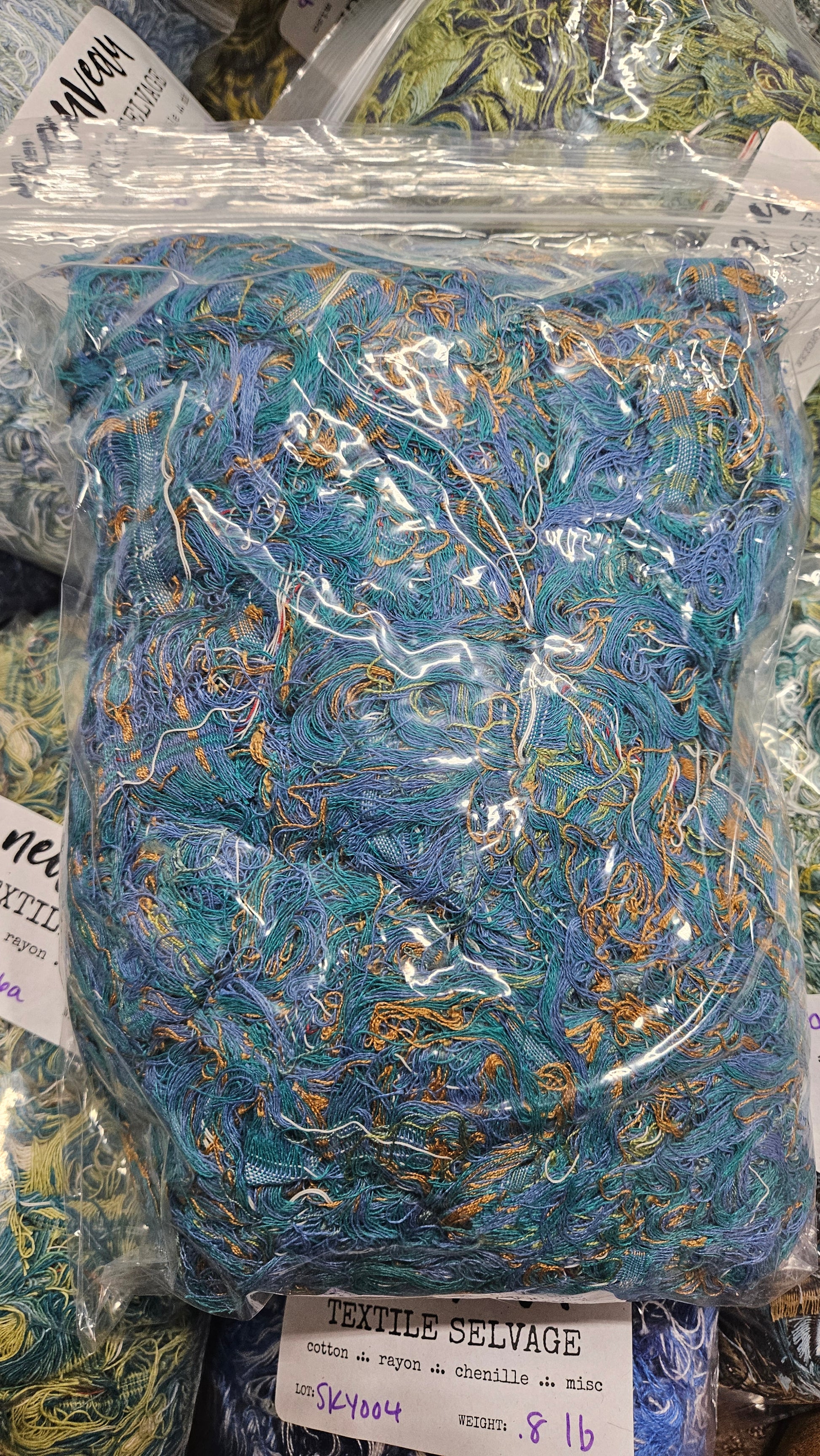 TROPICAL TEAL - textile selvedge for rug and art weaving and art yarn - TEAL013 (1 lb)