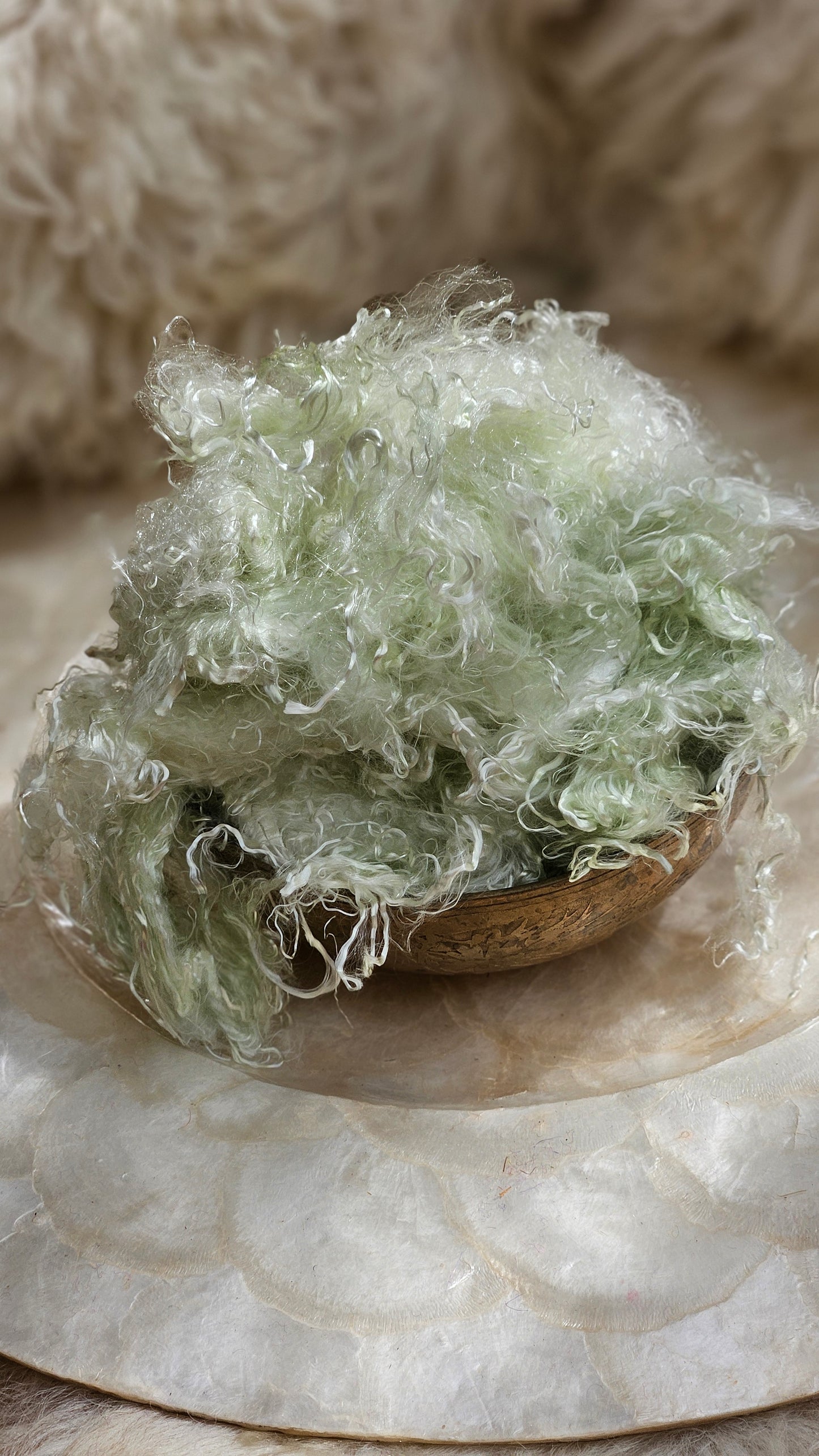 Hand-dyed eucalyptus crimp fiber with silky soft luminescent crimped texture - and perfect for spinning, felting, and papermaking. Sustainably sourced, vegan, plant-based, and artist-dyed in small batches