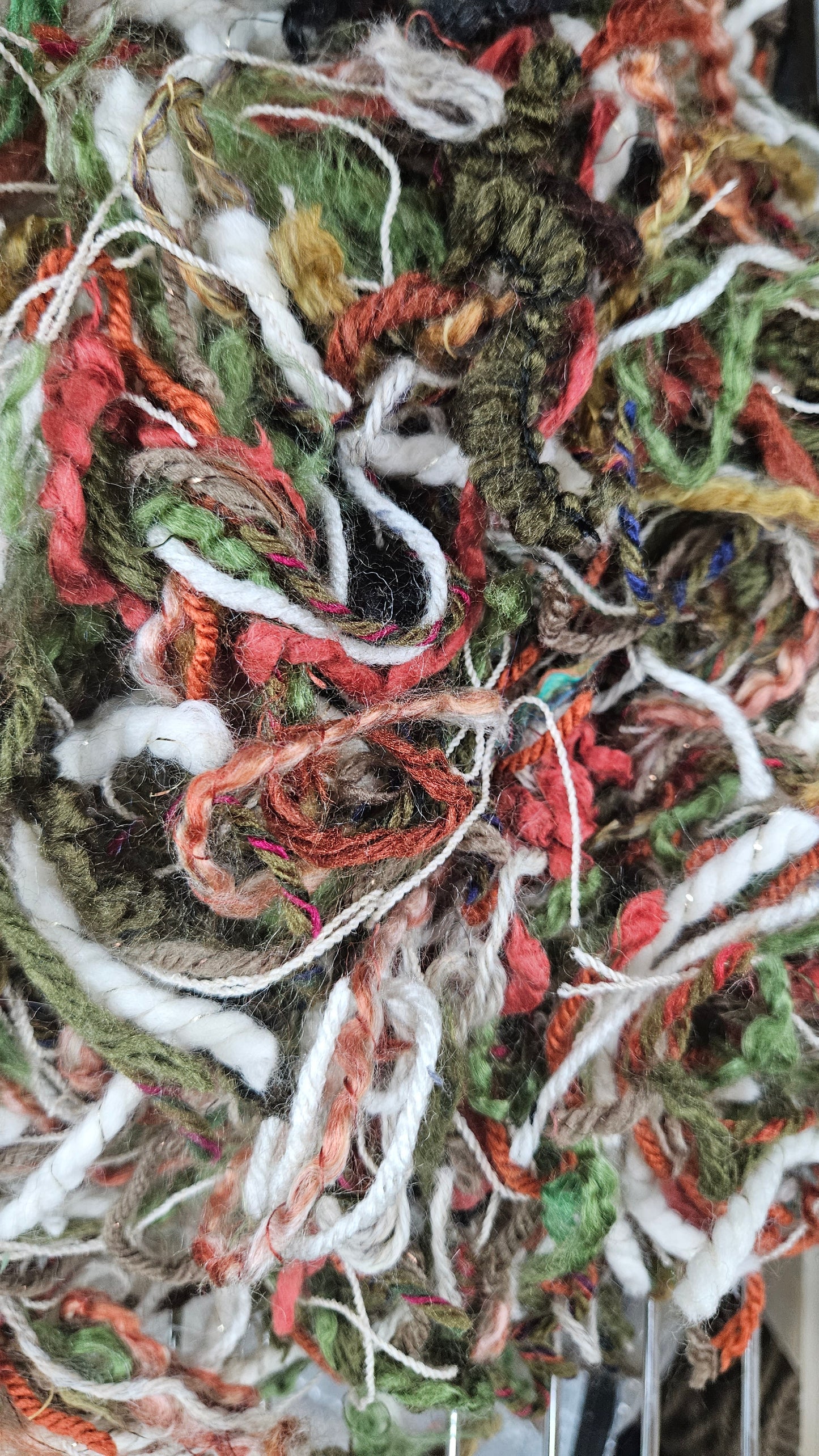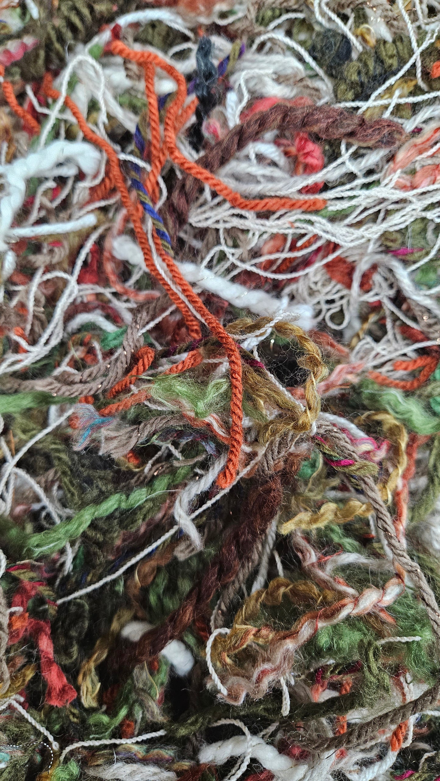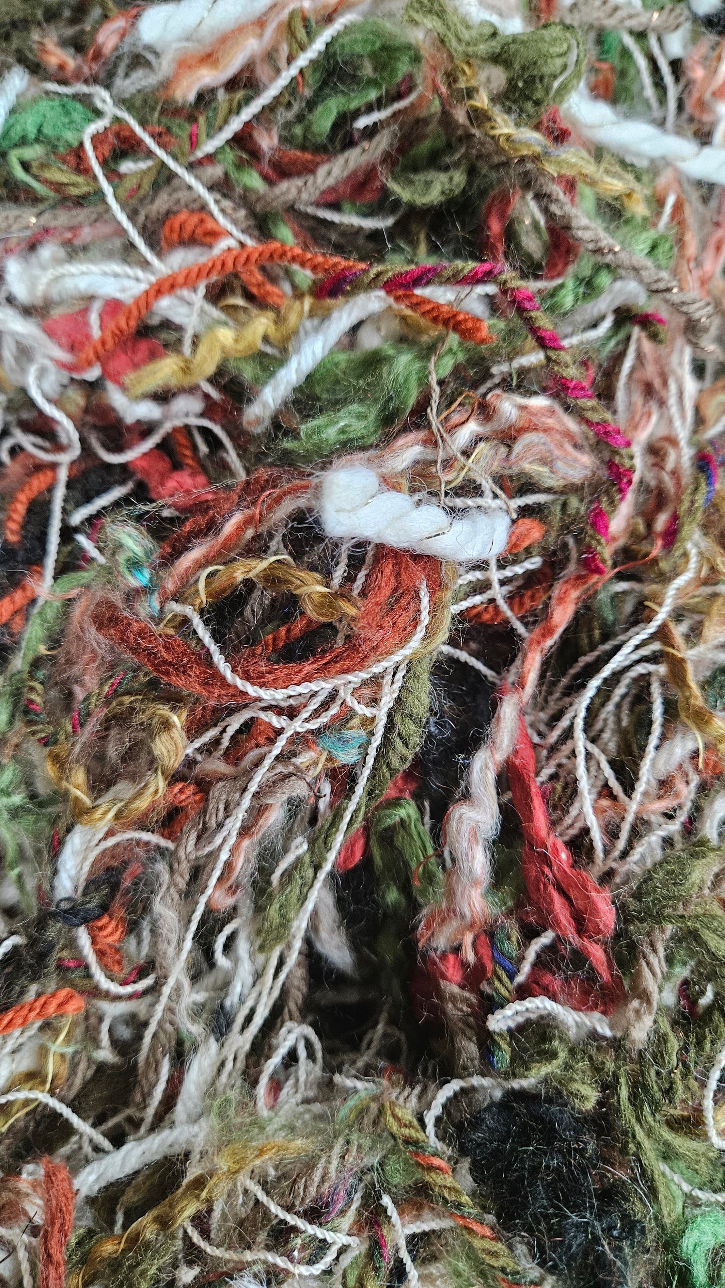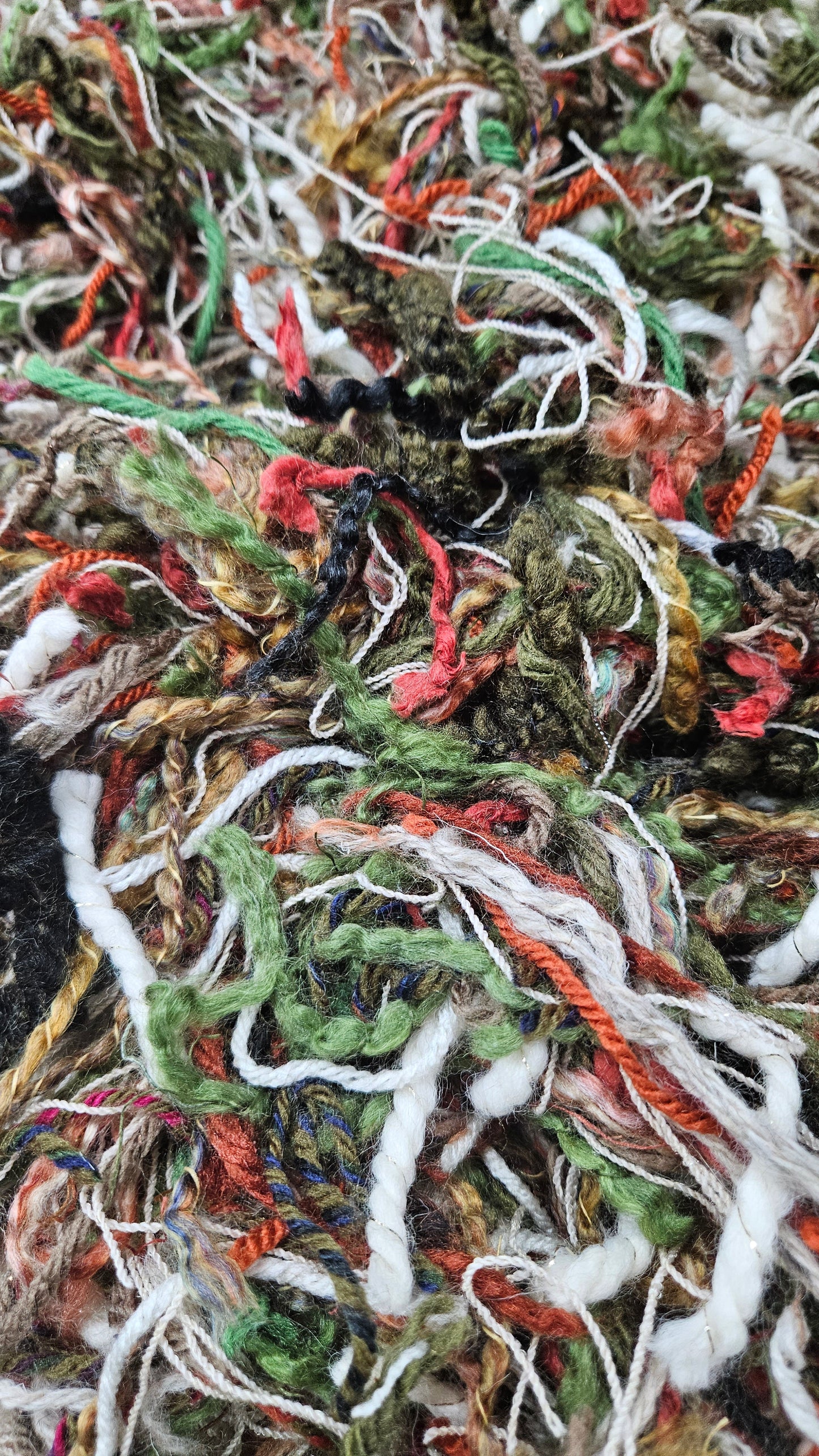 I love carding recycled textiles into art batts for spinning into yarns, it's a great way to create mindfully by reducing textile waste and incorporating it into art. I named each color way in this collection after a famous "Damsel in Distress" because these yarns were rescued from the dragon of textile industry waste and repurposed into a modern thread texture blend to live happily ever after in a fiber artist studio.