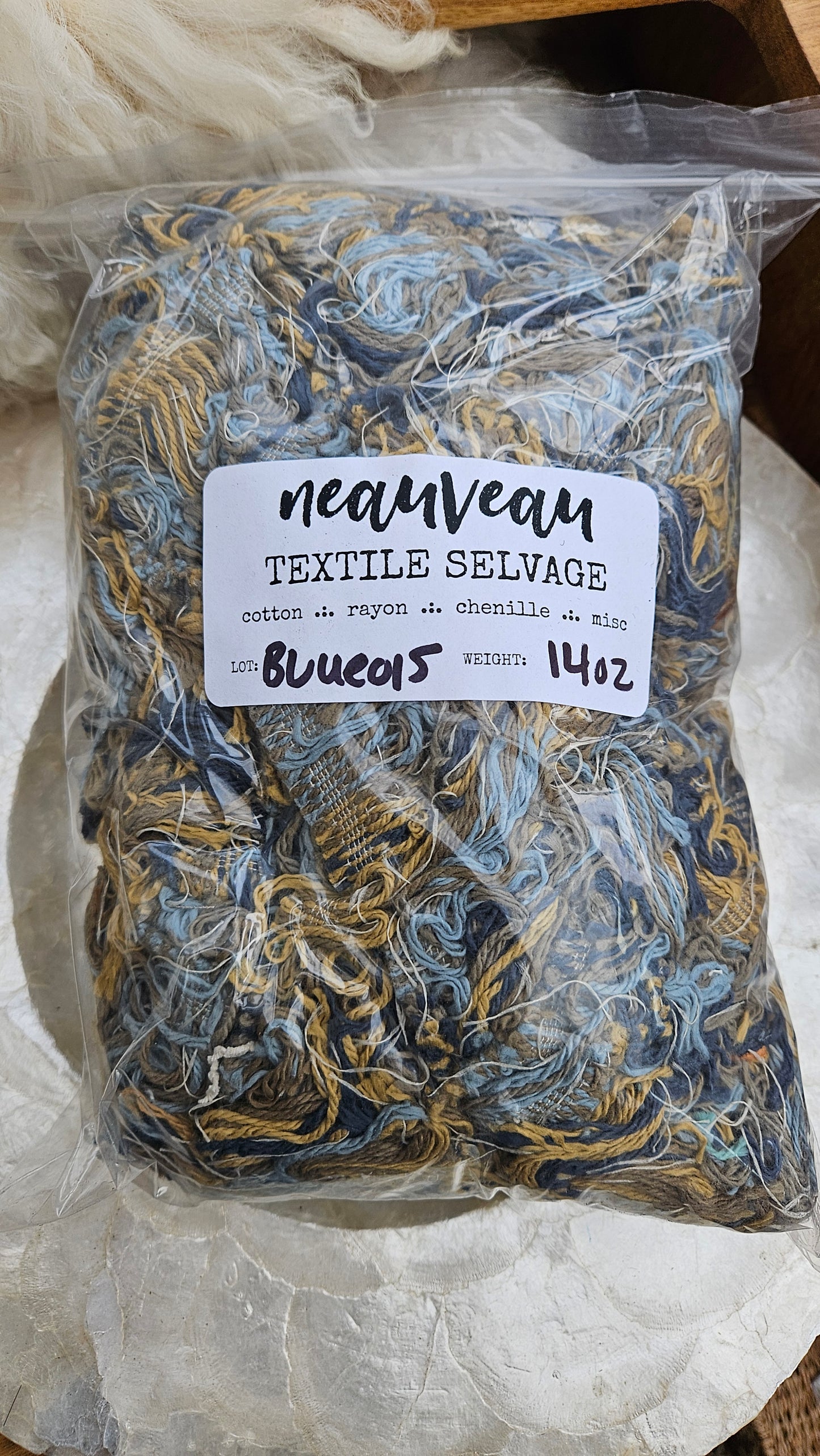 Rare (not wool) American Upholstery Selvage for shaggy fringe plying and weaving. Feels like rayon/cotton/blend and could likely be overdyed with RIT with unique results.