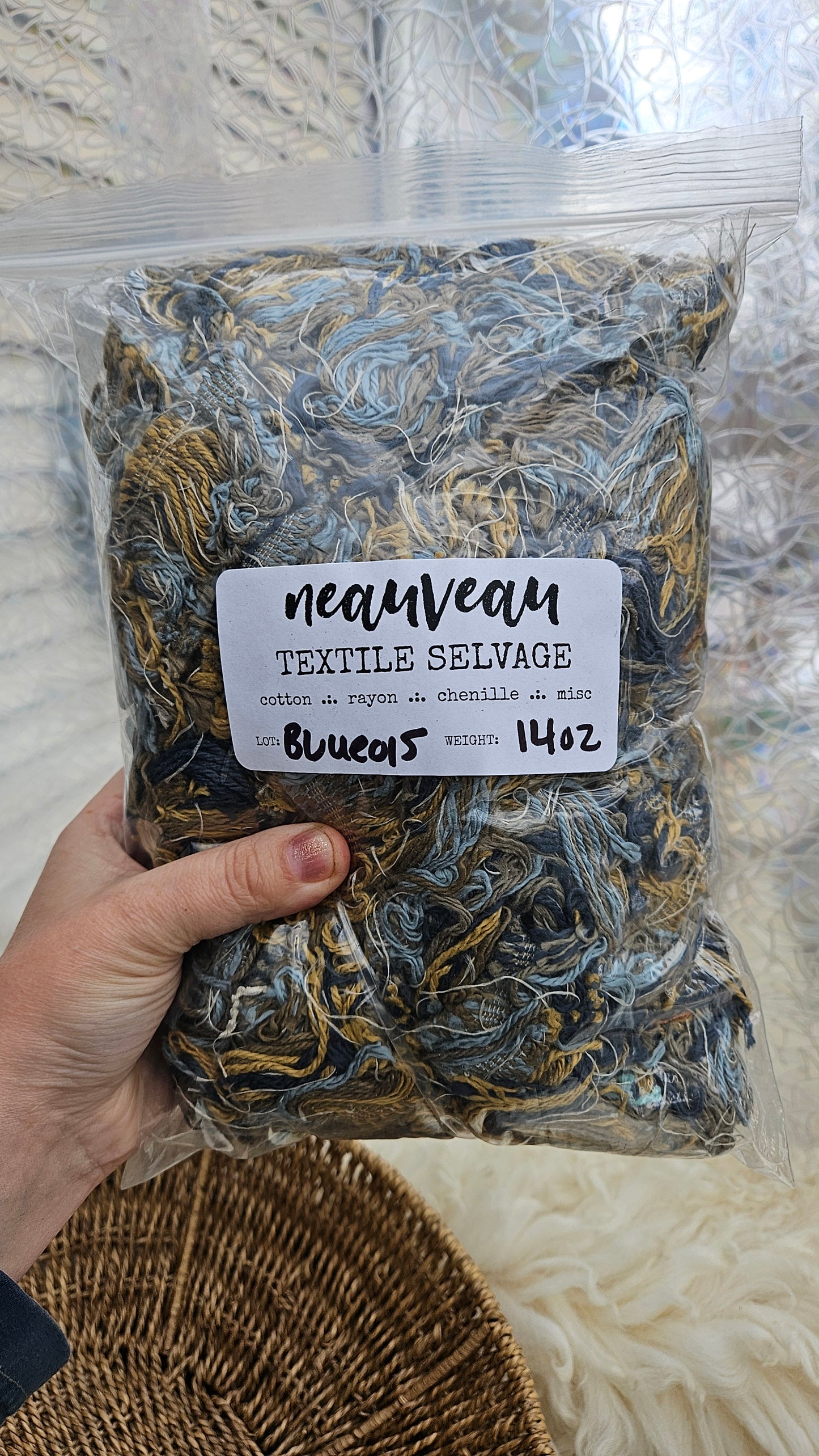 BLUE SELVAGE - rare American-made soft and thick textile selvedge for rug and art weaving and art yarn 14 oz | 015