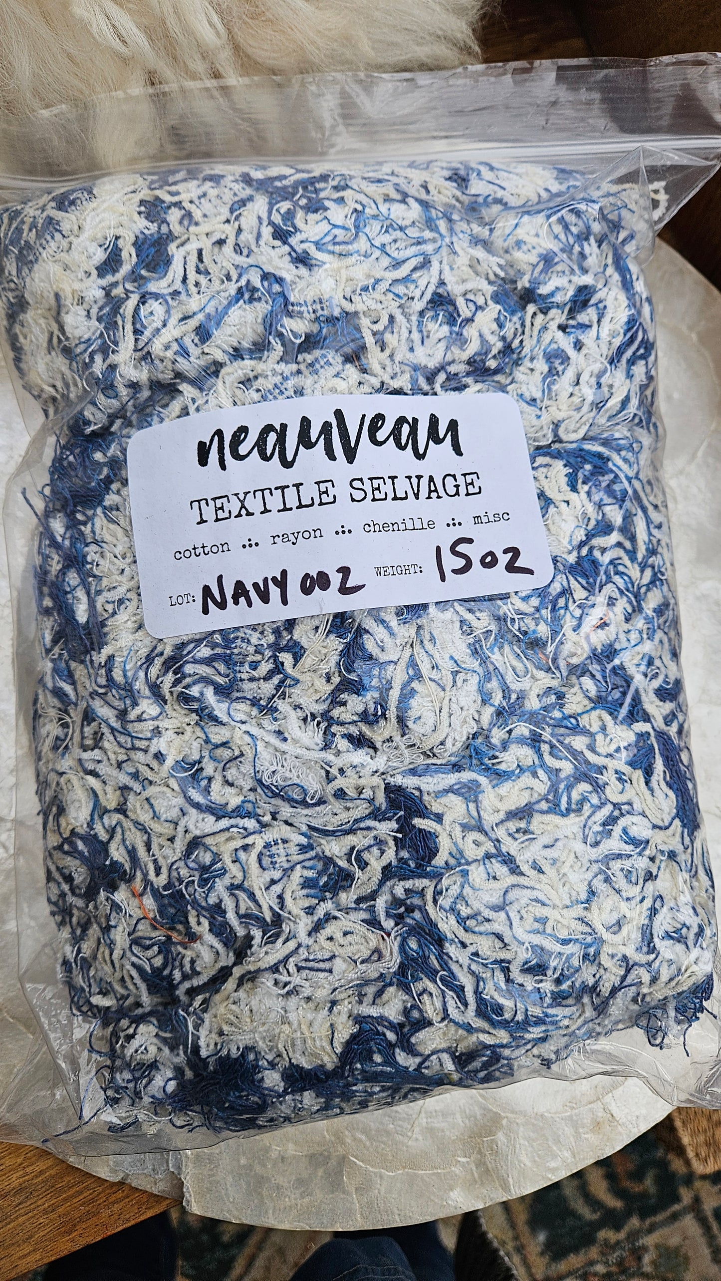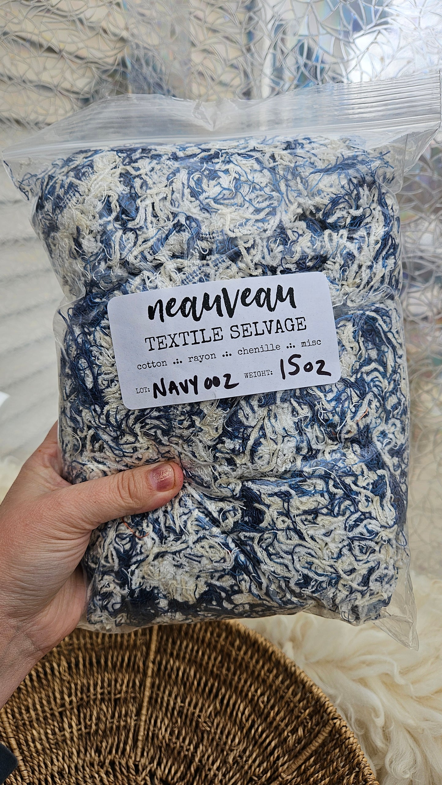 NAVY SELVAGE - rare American-made soft and thick textile selvedge for rug and art weaving and art yarn 15 oz | 002