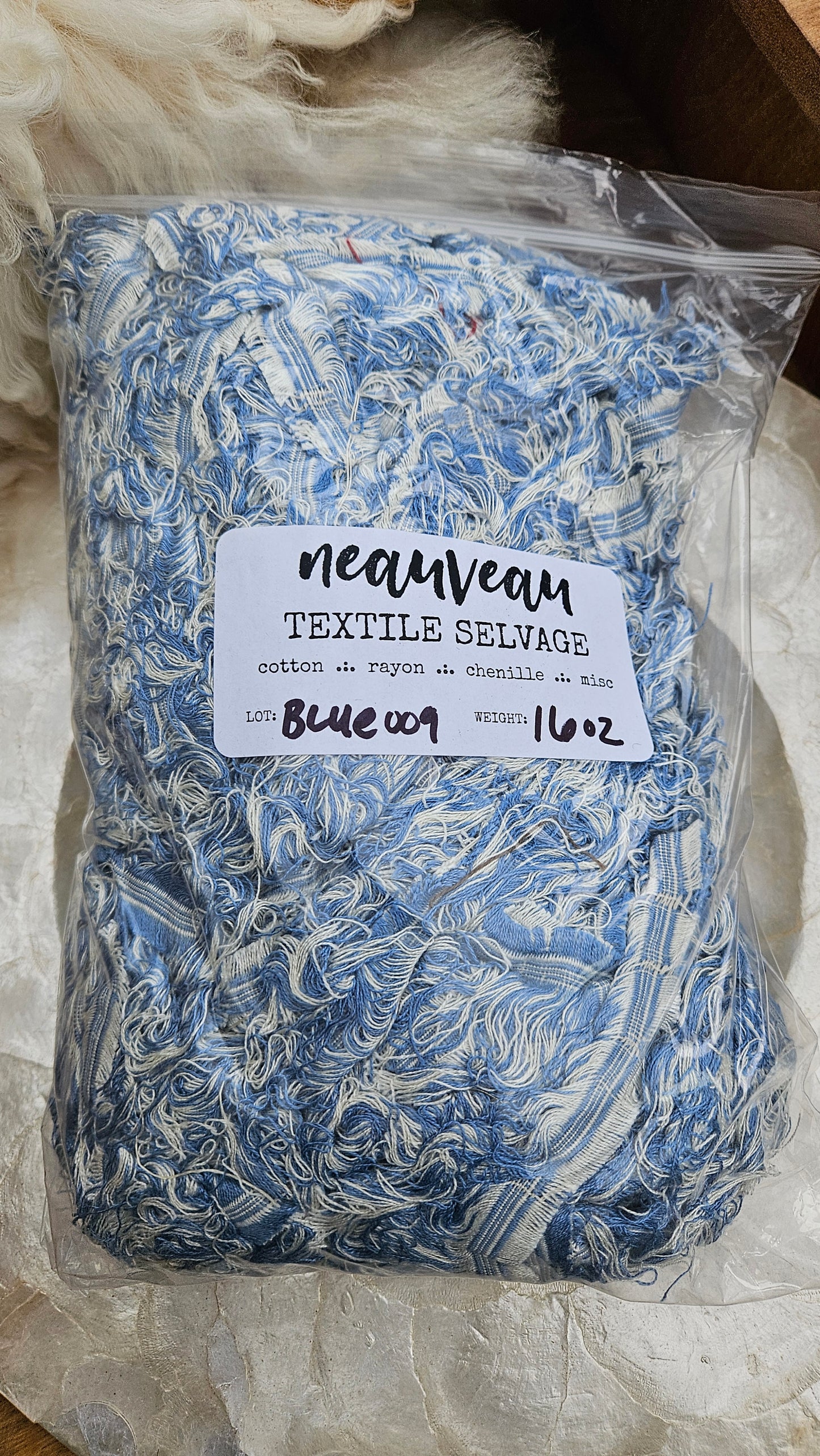 Rare (not wool) American Upholstery Selvage for shaggy fringe plying and weaving. Feels like rayon/cotton/blend and could likely be overdyed with RIT with unique results.