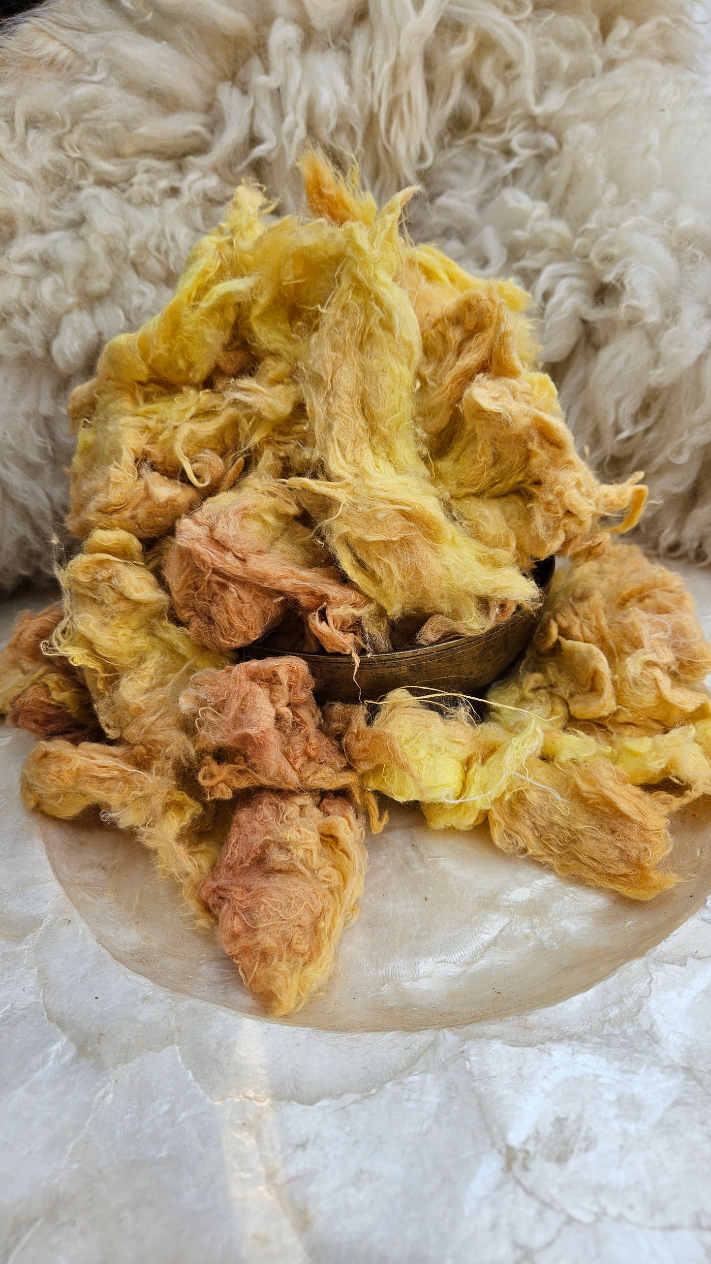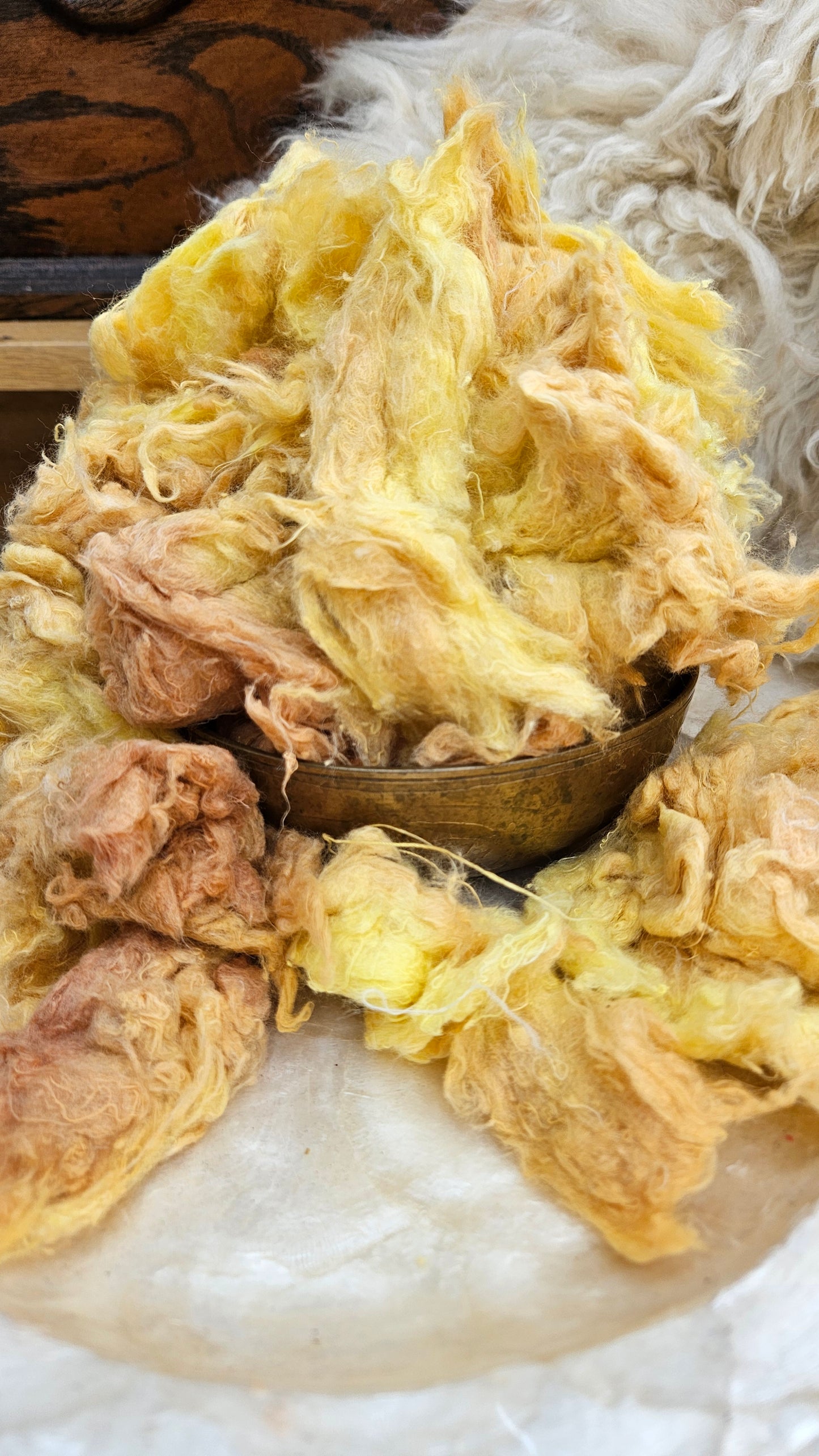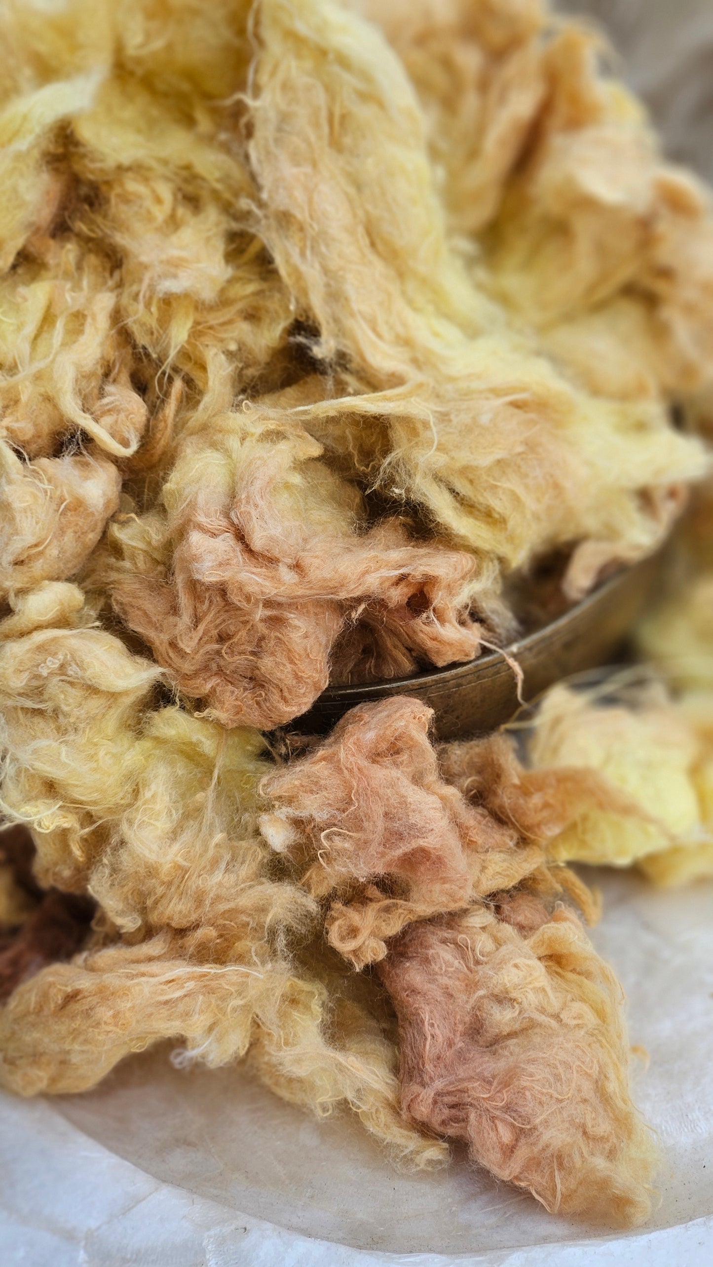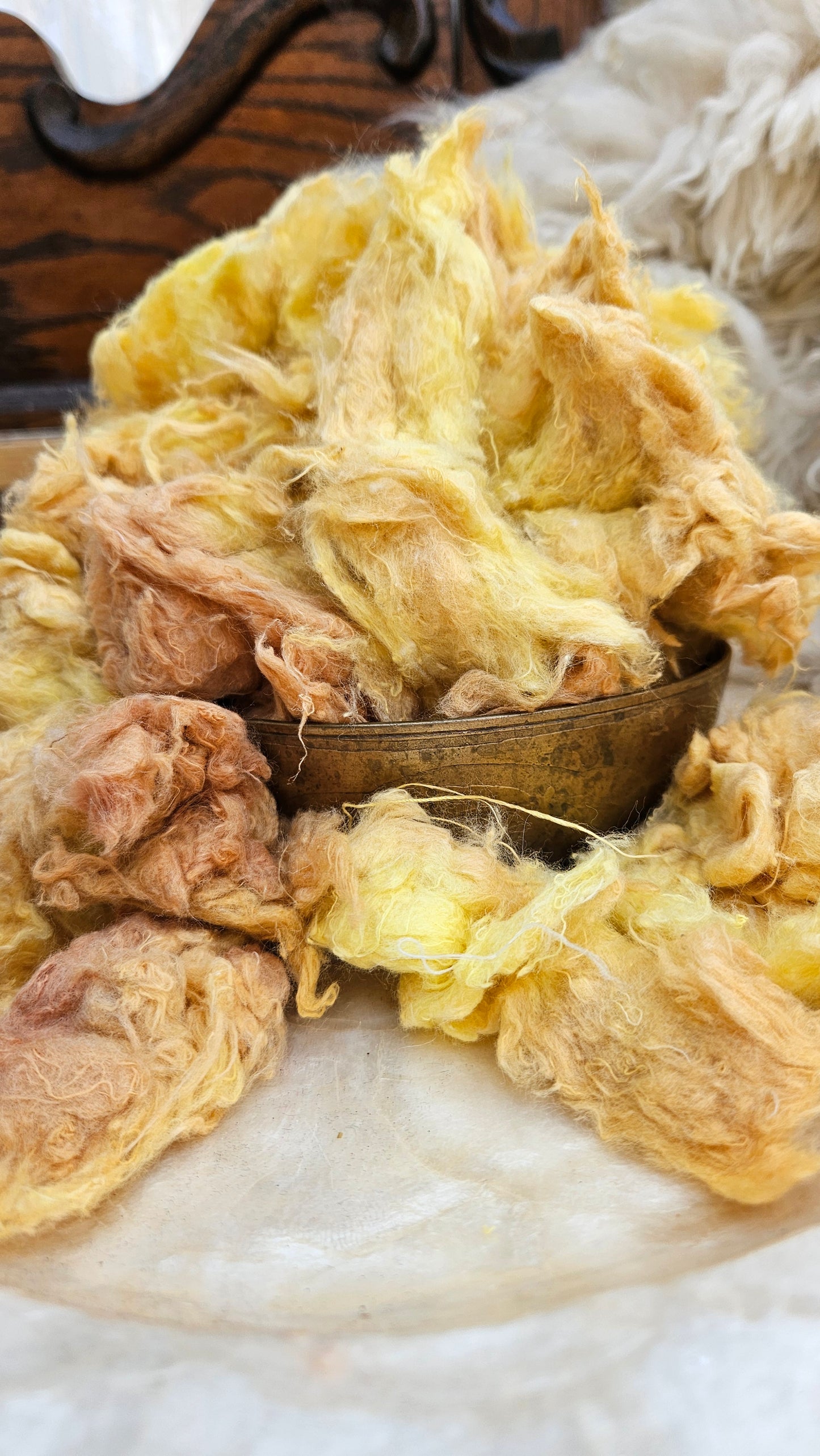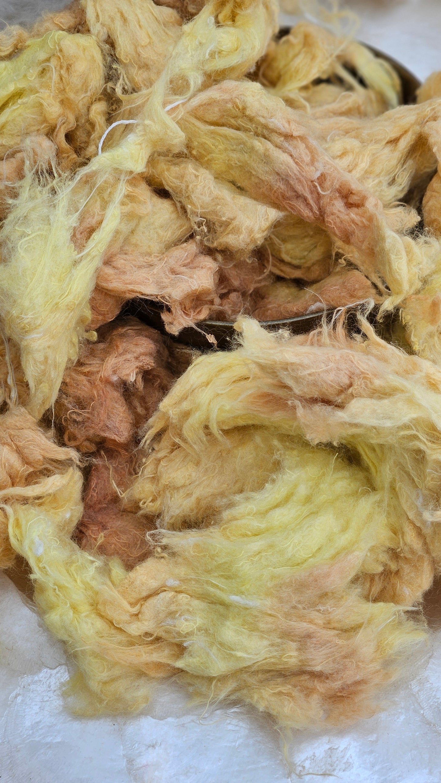 WHEAT - hand-dyed recycled cotton noil "feathers" effects texture for blending, felting, and papermaking - 2.5 oz | 71 g