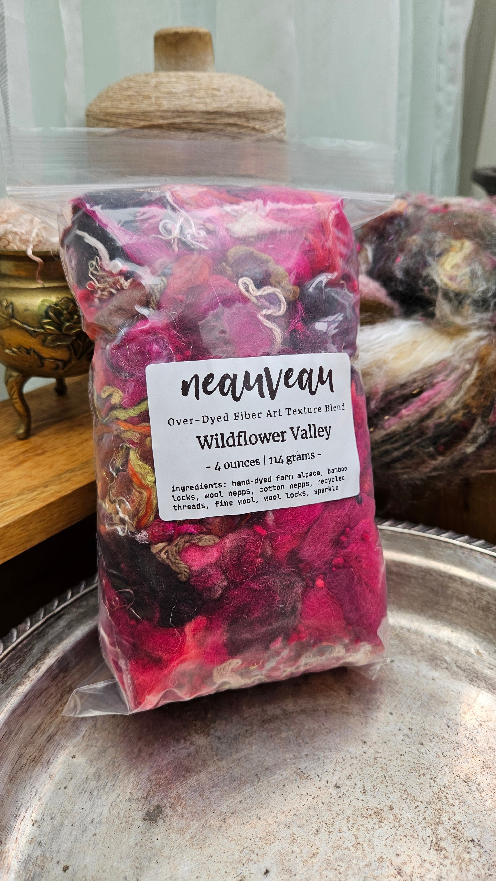 WILDFLOWER VALLEY - Hand-Dyed Texture Blend for art yarn embellishing, texture blending, felting, mixed media, and fiber art - 4 ounces | 114 grams